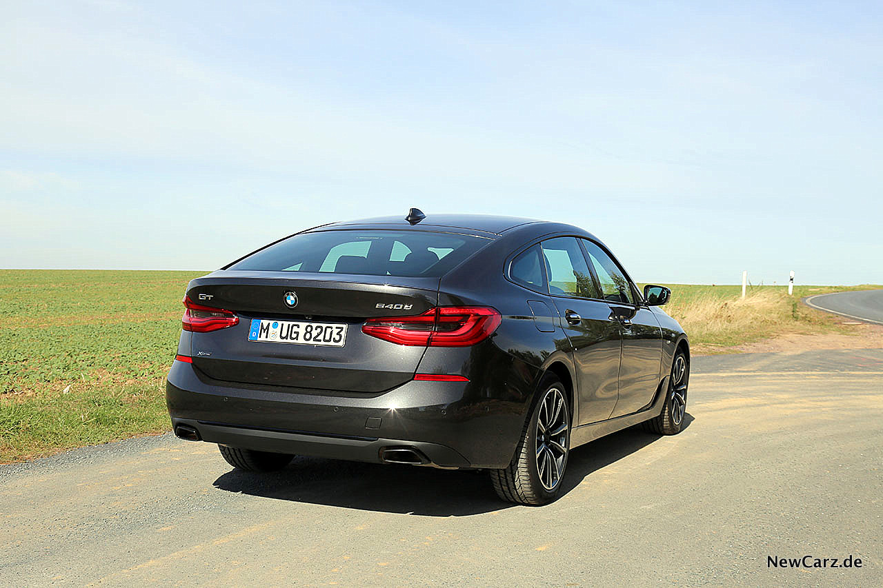 Die Seitenansicht des Münchner GT offeriert nunmehr keinen Buckel mehr, sondern elegante Kurven und Linien, die den aerodynamischen Strömen ihren vorbestimmten Weg aufzuzeigen scheinen und am Heck ihren Höhepunkt in einem kleinen, ausfahrbaren Spoiler finden. Keine Frage, seitlich betrachtet sieht man dem BMW 640d GT seine beeindruckenden 5,09 Meter Länge besonders an.