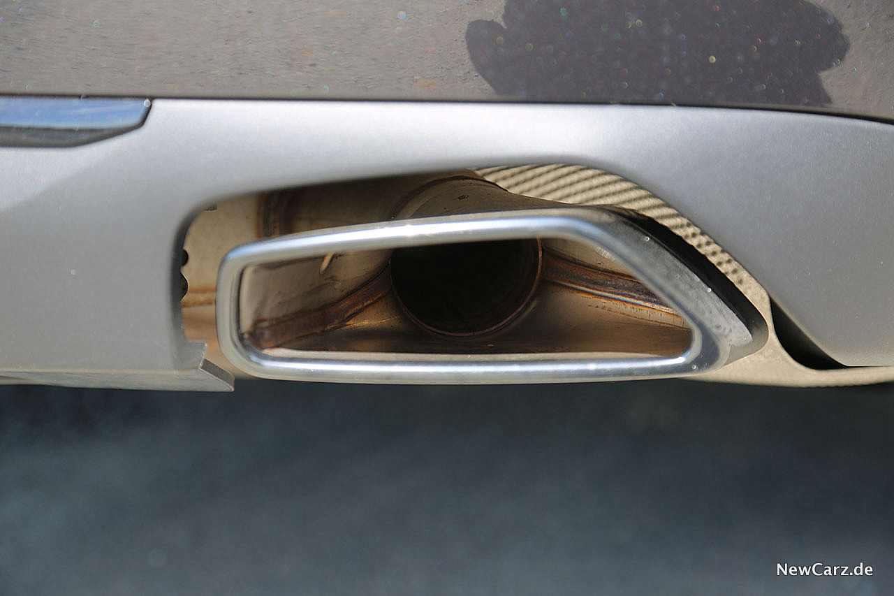 Zwei echte Endrohre aus einer Edelstahlabgasanlage runden die Heckpartie ab und bescheinigen optisch die einem Gran Turismo würdige Ernsthaftigkeit.