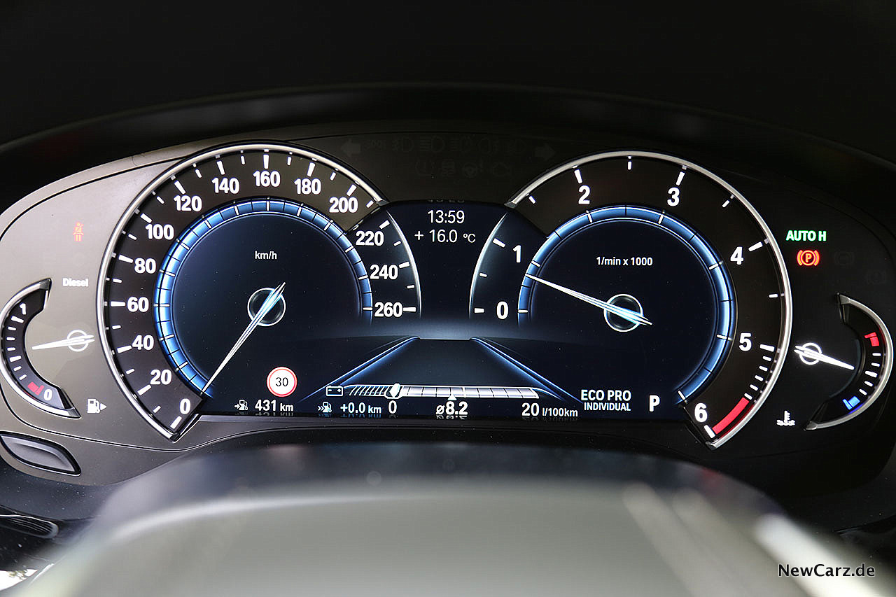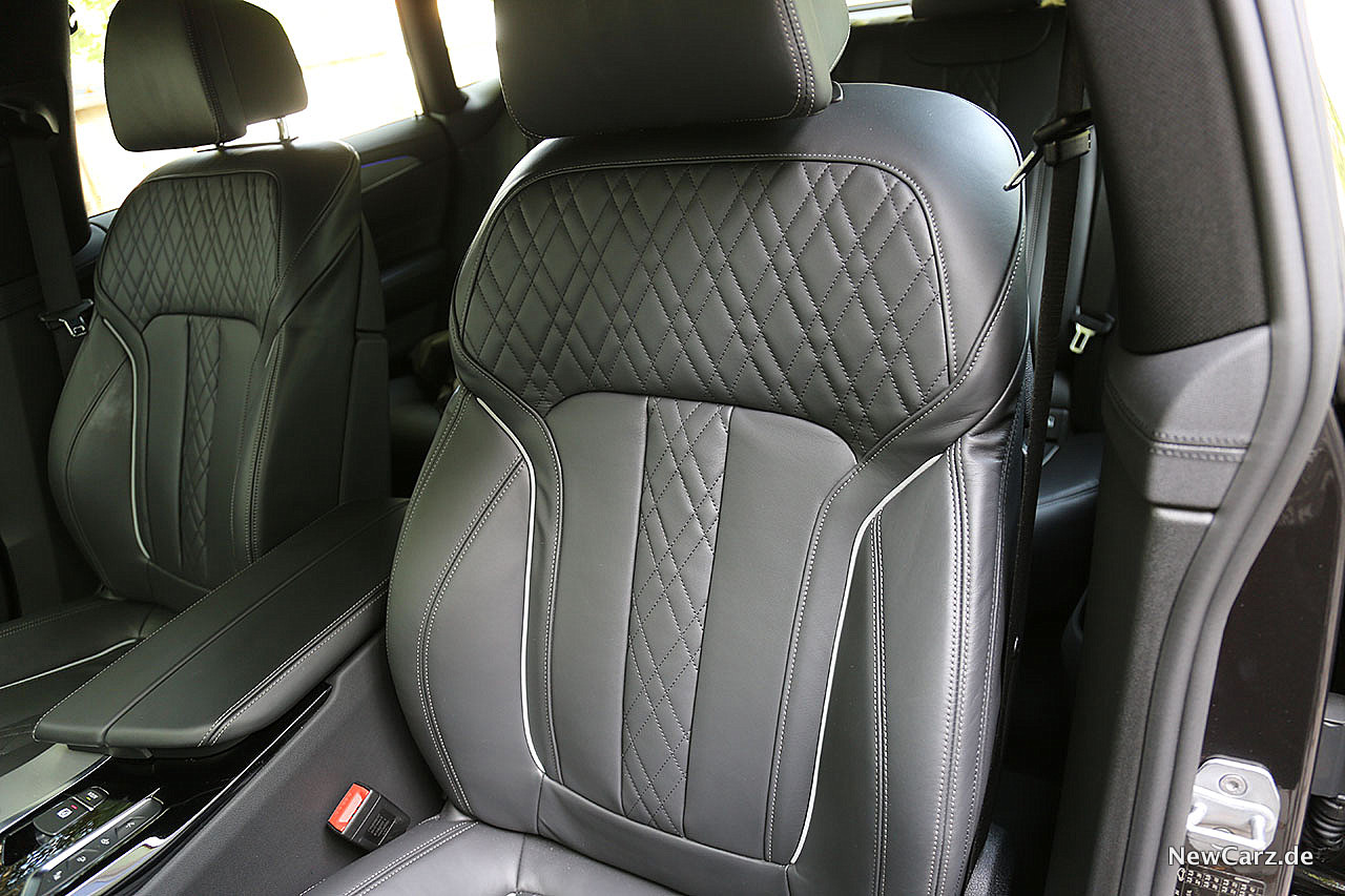 Außerdem verhindert der vorherig erwähnte Schutzschild, die Kaltverformung beim Parkvorgang. Denn unterschreitet man ein Mindestmaß zum Hindernis, leitet das Auto eine – übrigens sehr forsche – Bremsung ein. Auch ein Parkassistent ist an Bord und manövrierte im Test den großen Bavaren zuverlässig und sicher in Parklücken, die man selbst gar nicht als tauglich auserkoren hätte.