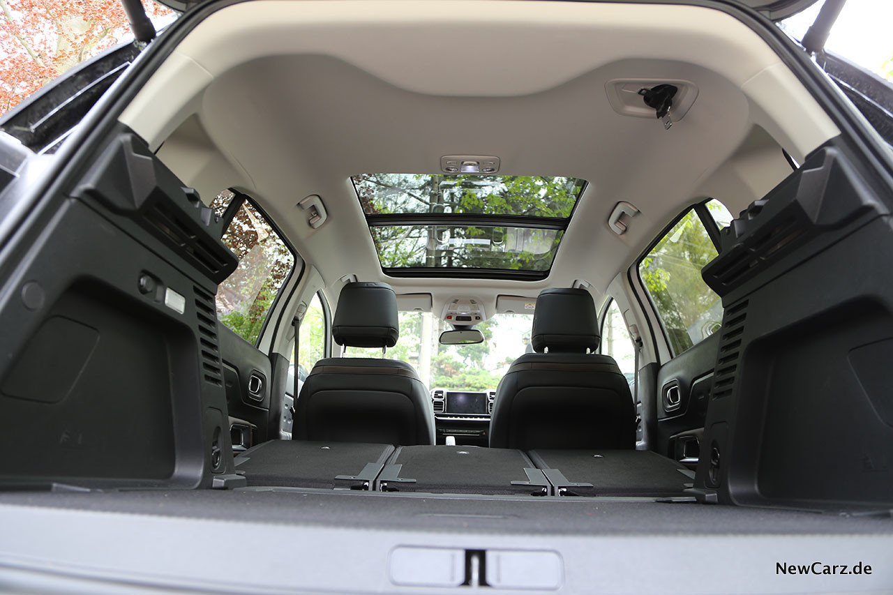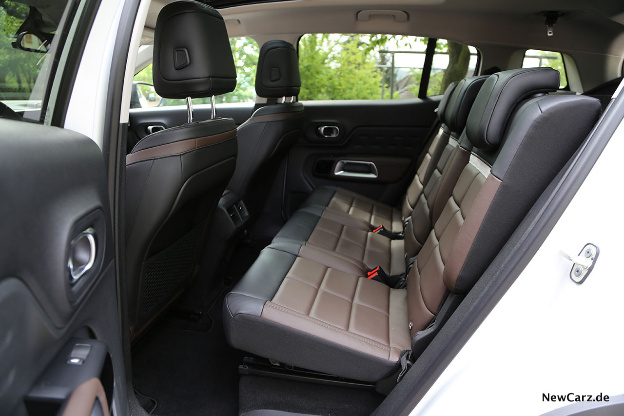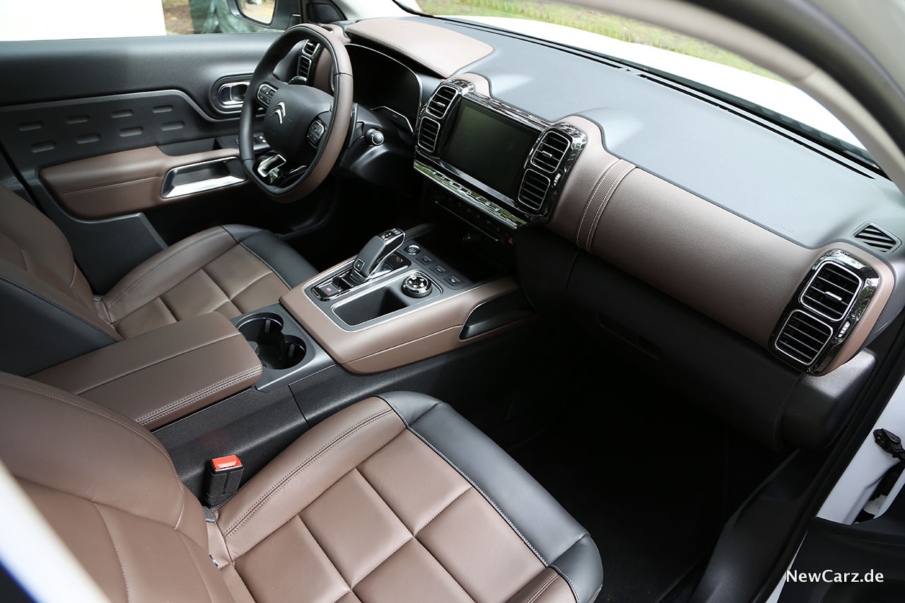 Wirft man einen Blick auf den Innenraum des C5 Aircross, wird eines sogleich offensichtlich: Hier gibt es jede Menge Platz. Das luftig helle Interieur hält auch, was der erste Eindruck verspricht. Die insgesamt fünf Einzelsitze sind bequem, bieten genügend Beinauflage und auch der Kopf kommt dem Dachhimmel nirgends zu nahe. Erst ab deutlich mehr als 1,90 Meter kommt man in diesem Kompakt-SUV an die Kapazitätsgrenzen, was bedeutet, dass der Citroen mehr bietet, als man von einem Kompakt-SUV erwarten darf.