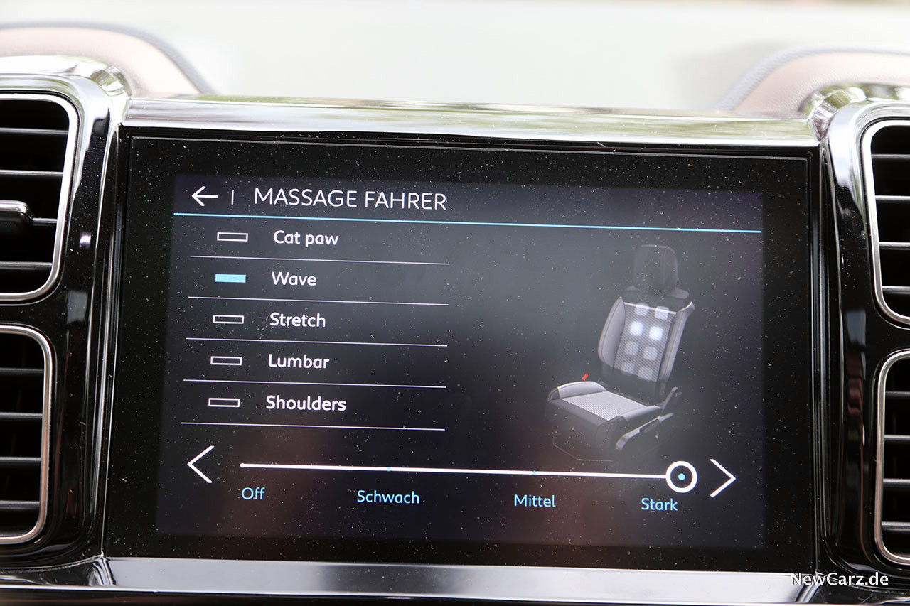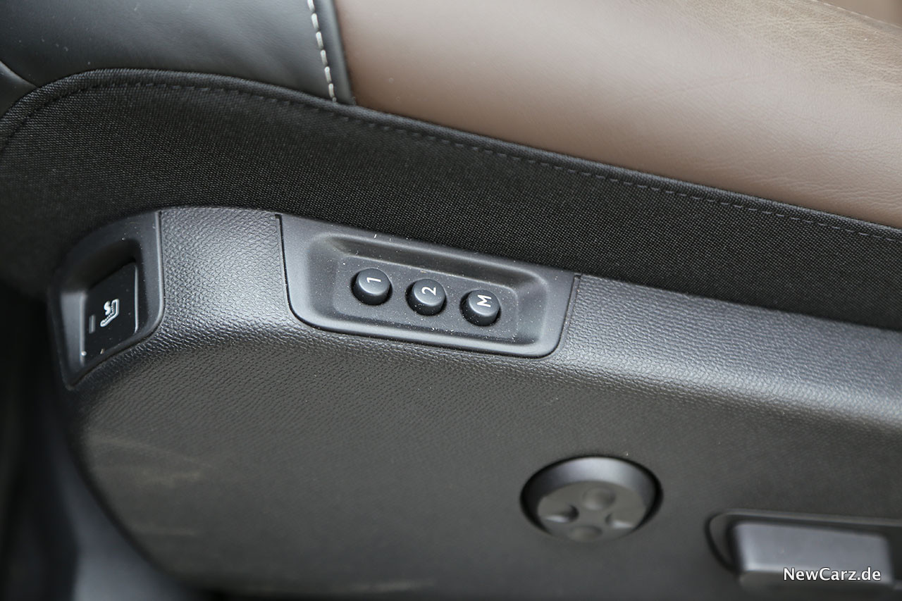 Die Vordersitze besaßen neben der elektrischen Verstellung auch eine Sitzmemory mit zwei Speicherplätzen sowie ein umfangreiches Massageprogramm, welches brauchbare Anwendungen für diverse Anforderungen bereithielt. Es wurde laut Testbordbuch oft und gerne benutzt.