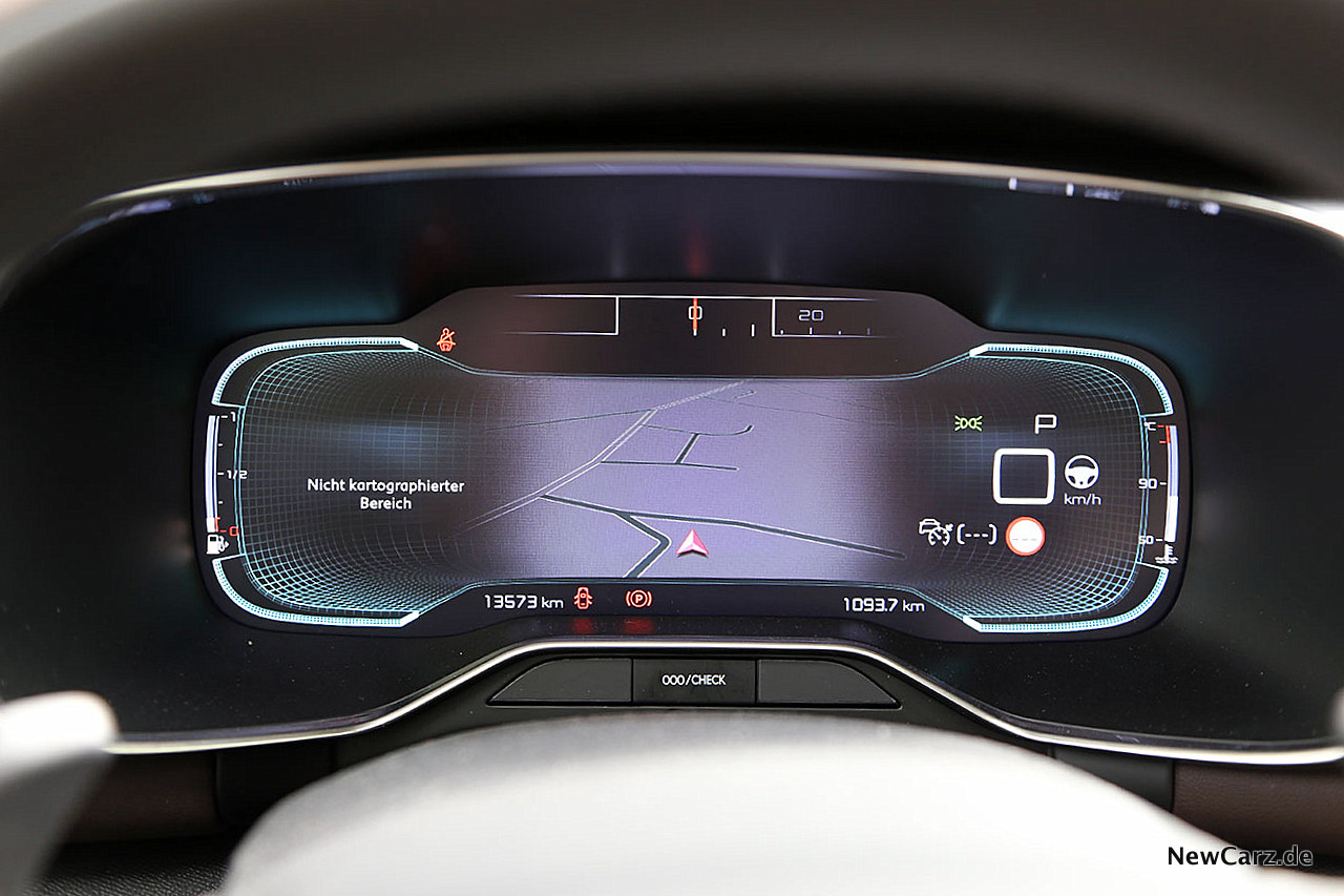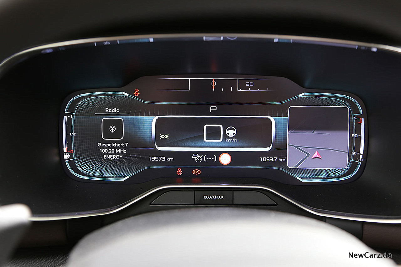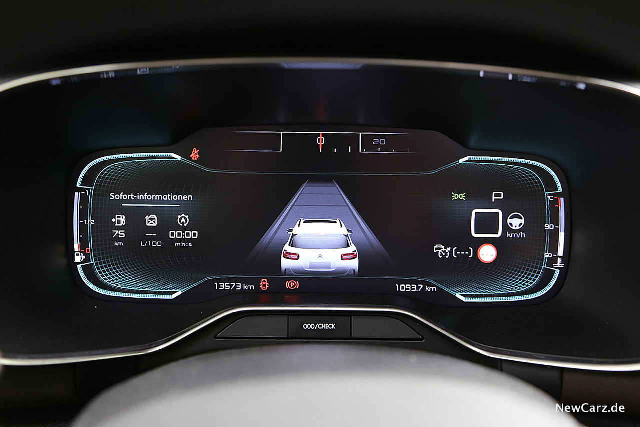 Das volldigitale Cockpit ist ab der Ausstattung „Feel“ serienmäßig und kann auch begrenzt individualisiert werden. Was hier nicht gefiel – und bereits seit Jahren von uns im Zusammenhang mit dem PSA-Cockpitinstrument bemängelt wird – ist die Tatsache, dass man die Durchschnittsverbräuche und die Trip-Kilometer immer nur für wenige Sekunden anzeigen lassen kann. Bei Citroen heißt dieser Menüpunkt „Sofort-Informationen“.