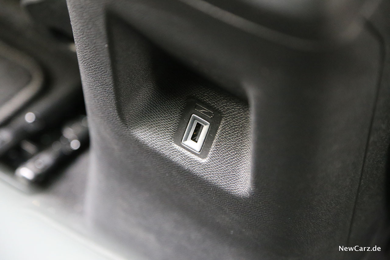 Eine „Connected Cam“ am Innenspiegel ist Bestandteil des 800 Euro teuren Technik Pakets, das zusätzlich die 360-Grad Kamera und DAB+ beinhaltet. Diese DashCam kann Fotos und Filme in Full-HD aufnehmen und diese per Mail oder soziale Netzwerke teilen. Ein 16 GB großer Speicher ermöglicht hier genügend Platz. Übrigens: Im Falle eines Unfalls wird die Kamera automatisch aktiviert und die Aufnahme gespeichert.