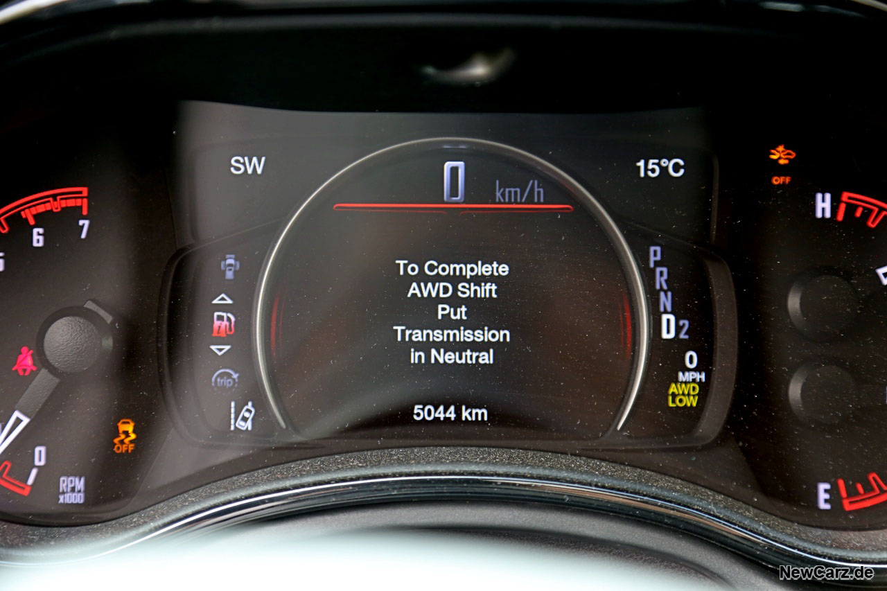 Das Lenkrad ist angenehm dick gepolstert und die Funktionen der Tasten schnell verinnerlicht. Nur die Tasten auf der Rückseite des Lenkrads findet man gegebenenfalls erst später und freut sich dann umso mehr über die mögliche Fernsteuerung der Lautstärke oder die von hier aus bequeme Sendersuche. Cool fanden wir den für Dodge typischen Wählhebel im Design eines Flugzeug-Schubhebels.