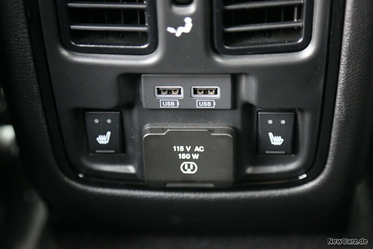 Als überaus praktikabel erweisen sich hingegen die vielen Anschlussmöglichkeiten. Es gibt unzählige Steckdosen und USB-Slots – zusätzlich auch im USB-C-Format – im gesamten Fahrzeug. Nur der RAM kann hier noch mehr bieten. Mehrere Ablagen, Staufächer und eine Vielzahl an Getränkehaltern gehören ebenfalls zum Repertoire des Innenraums und erhöhen zusätzlich die Praktikabilität.