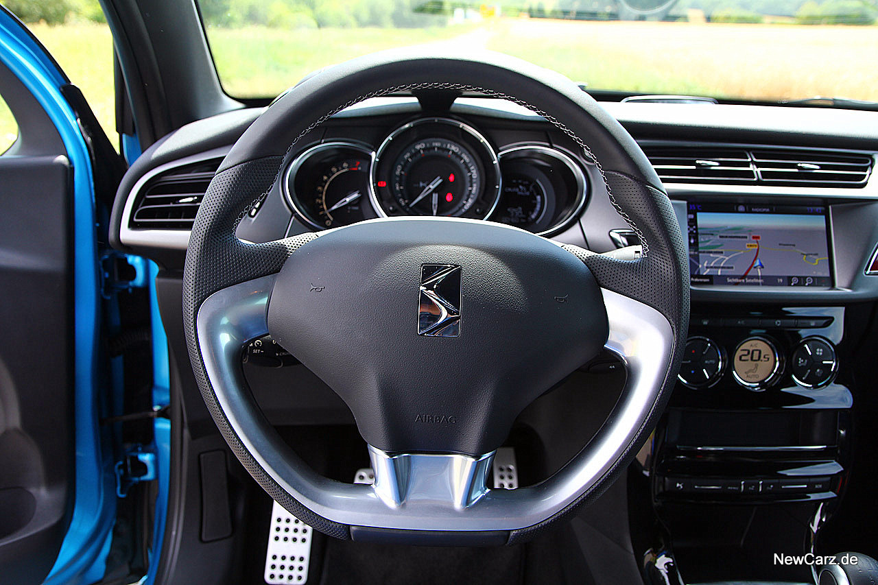 Die Rundumsicht ist dank des großzügigen Einsatzes von Glas in Verbindung mit den übersichtlichen Abmessungen des DS 3 recht ordentlich. Aufgrund der vorhandenen Parksensoren und einer Rückfahrkamera, benötigen selbst Gelegenheitsfahrer oder Führerscheinneulinge keine Hilfe beim Rangieren des Franzosen.