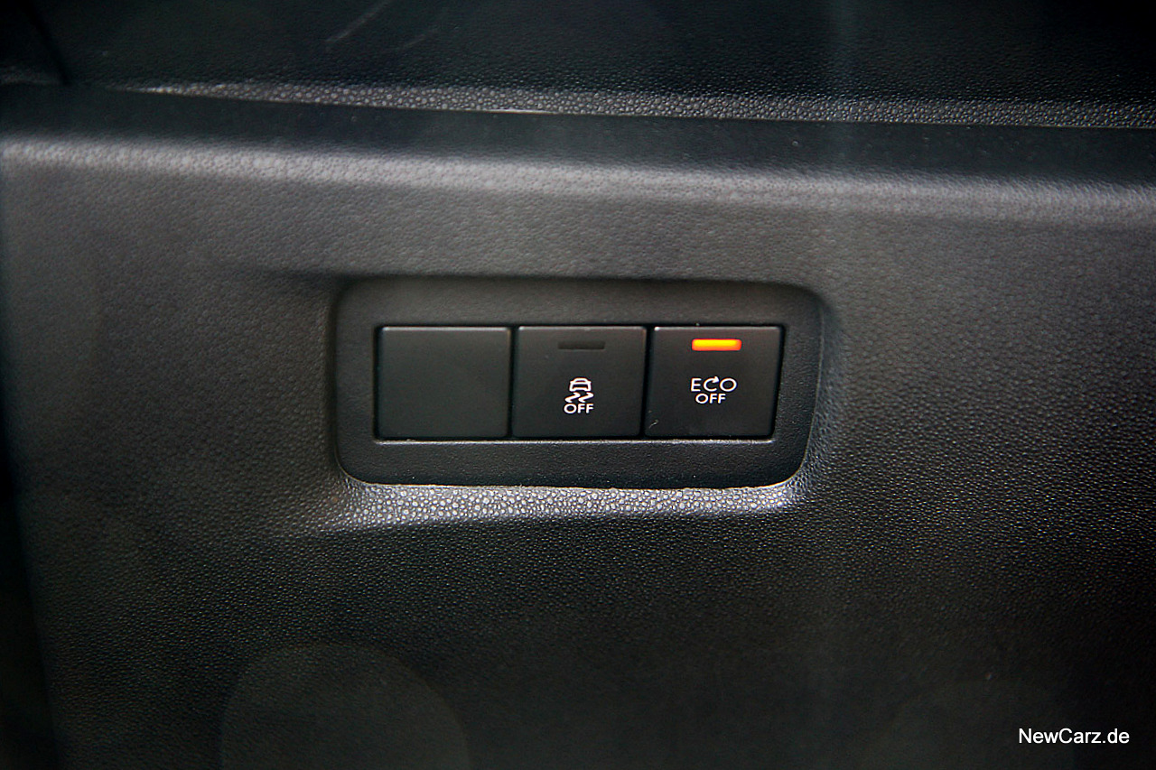 Ein Tempomat ist ebenso an Bord. Dieser wird über Bedienhebel am Lenkrad bedient, was sich aufgrund zu kleiner und sehr eng beieinanderliegender Tasten teilweise recht fummelig gestaltet.