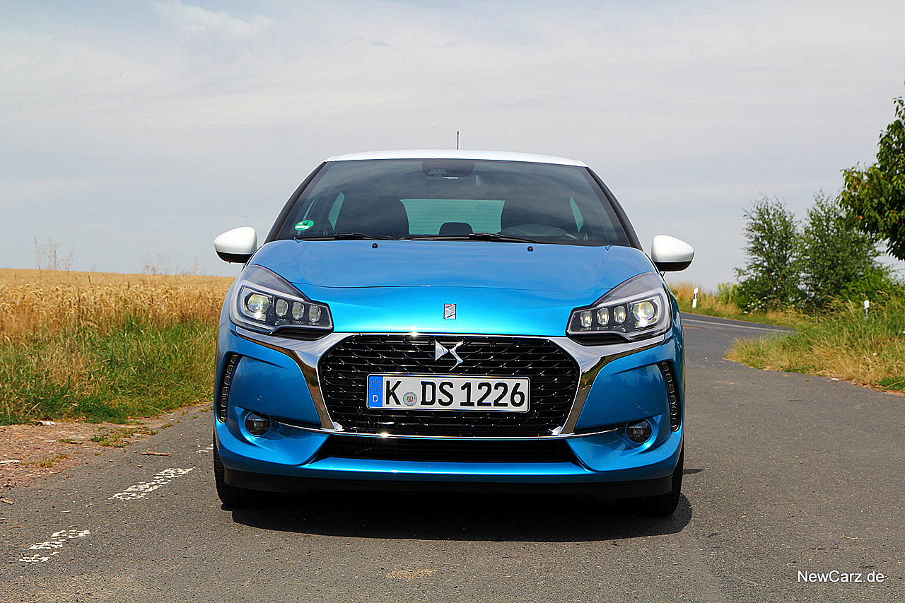 Mit einer markanten Front, unter anderem bestehend aus dem sechseckigen Frontgrill, von dem die verchromten ‚DS Wings‘ bis unter die Scheinwerfer reichen, zeigt der DS 3 markentreues Design. Die sehr modern erscheinende, einzigartige Lichtsignatur der LED-Hauptscheinwerfer und der senkrecht angebrachten Tagfahrlicht-LED-Leisten, zeugen zudem von einem hohen Wiedererkennungswert und versprühen ganz nebenbei nicht wenig Selbstbewusstsein.