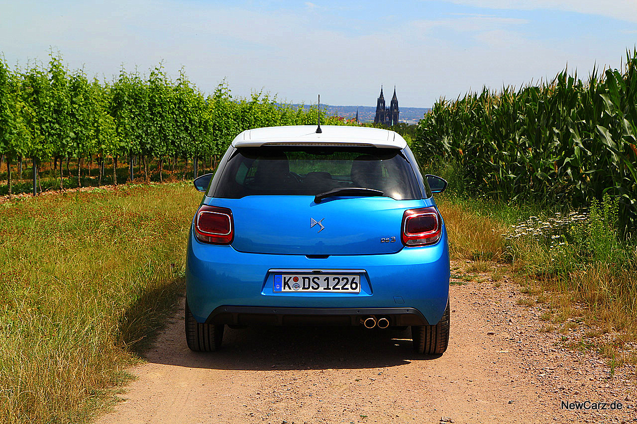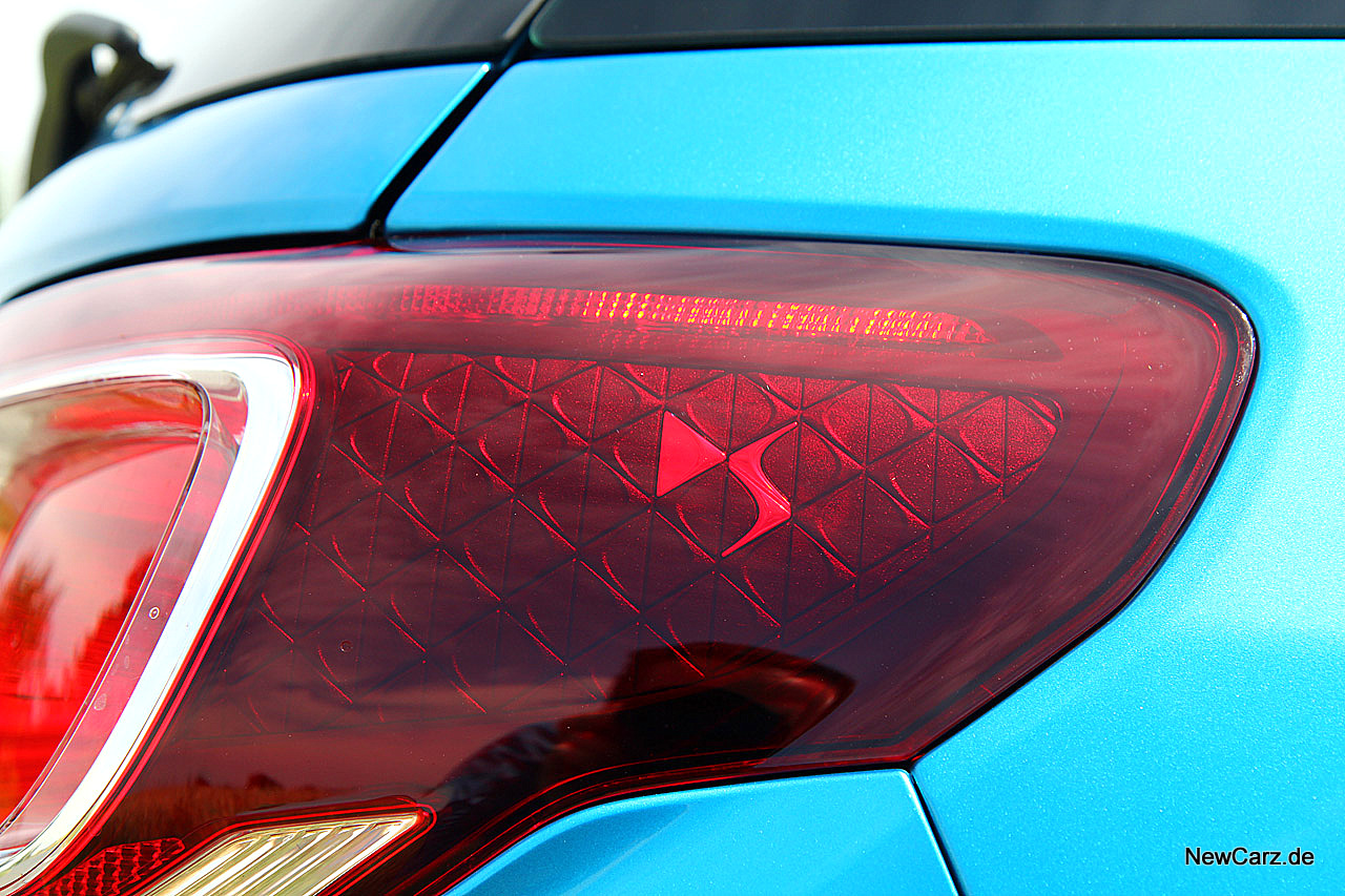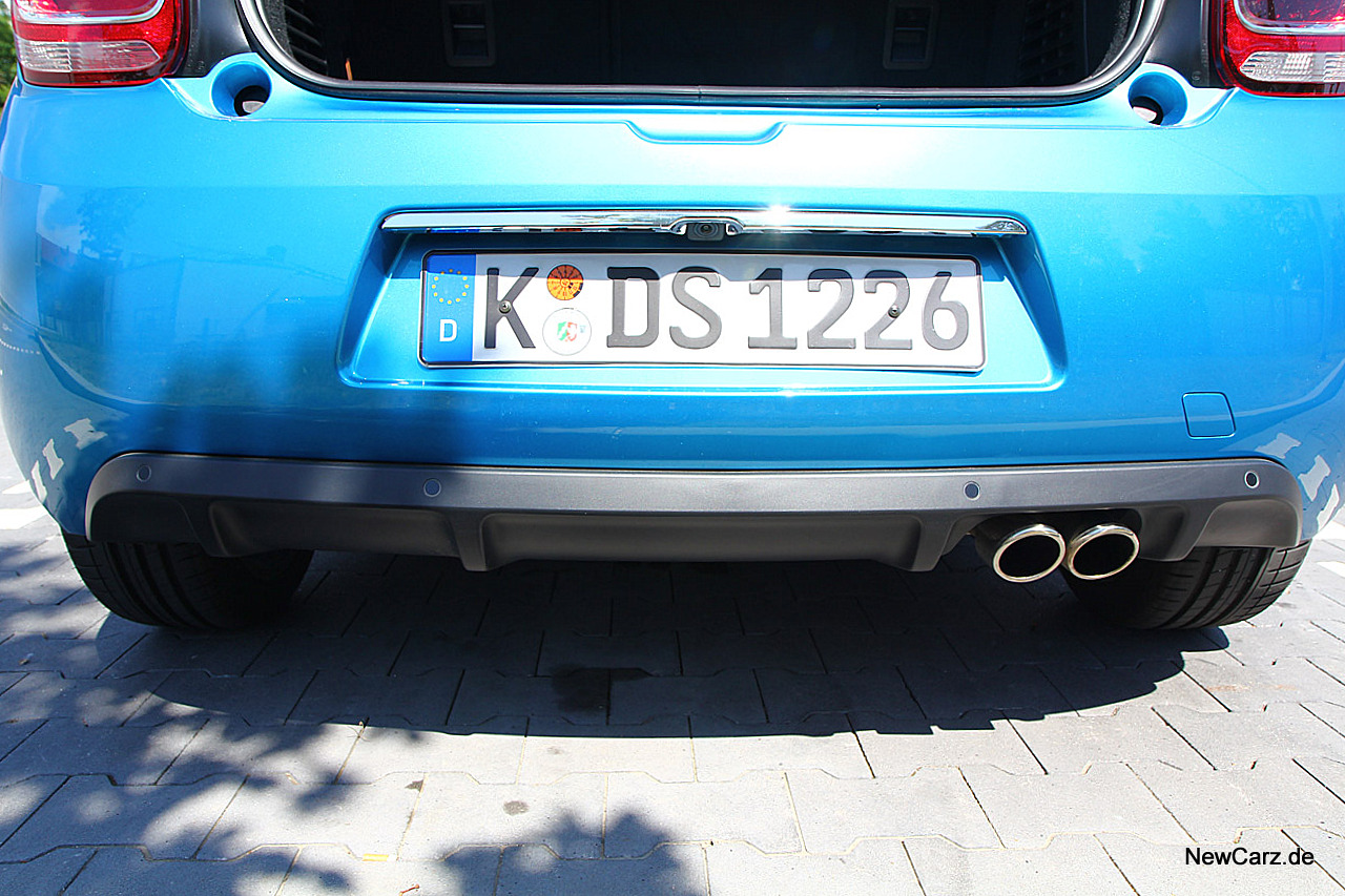 Auch mit doppeltem Endrohr und ebendiesem Diffusor wirkt das Heck – auch durch die leicht abgerundeten Heckleuchten mit den schicken Dekorelementen sowie dem DS-Logo in den Seiten – ruhig und kompakt.