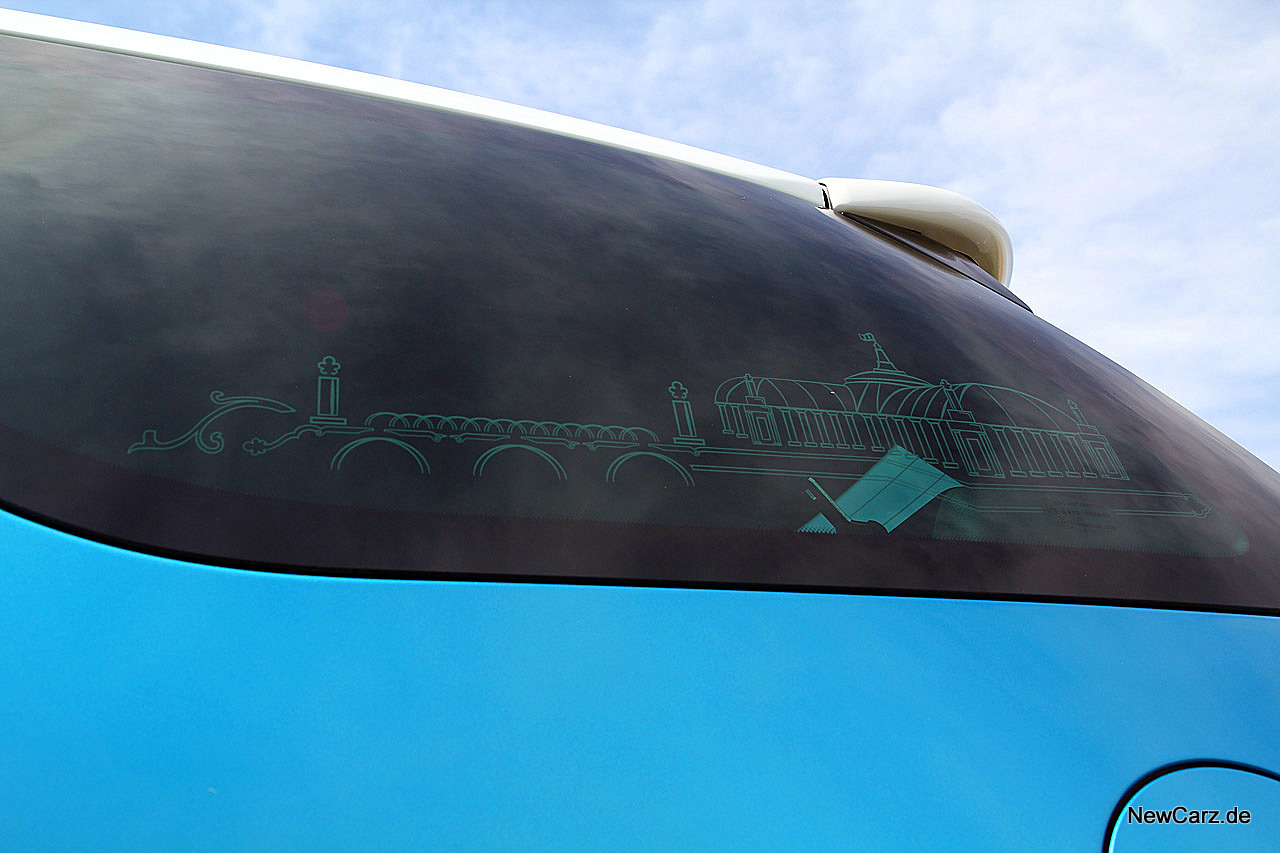 Durch das Dekorpaket Moondust-Grau besitzt unser Testfahrzeug an den hinteren Seitenfenstern einen Siebdruck einer Silhouette namens ‚Irrésistible Paris‘, welche man auch im Interieur wiederfindet.