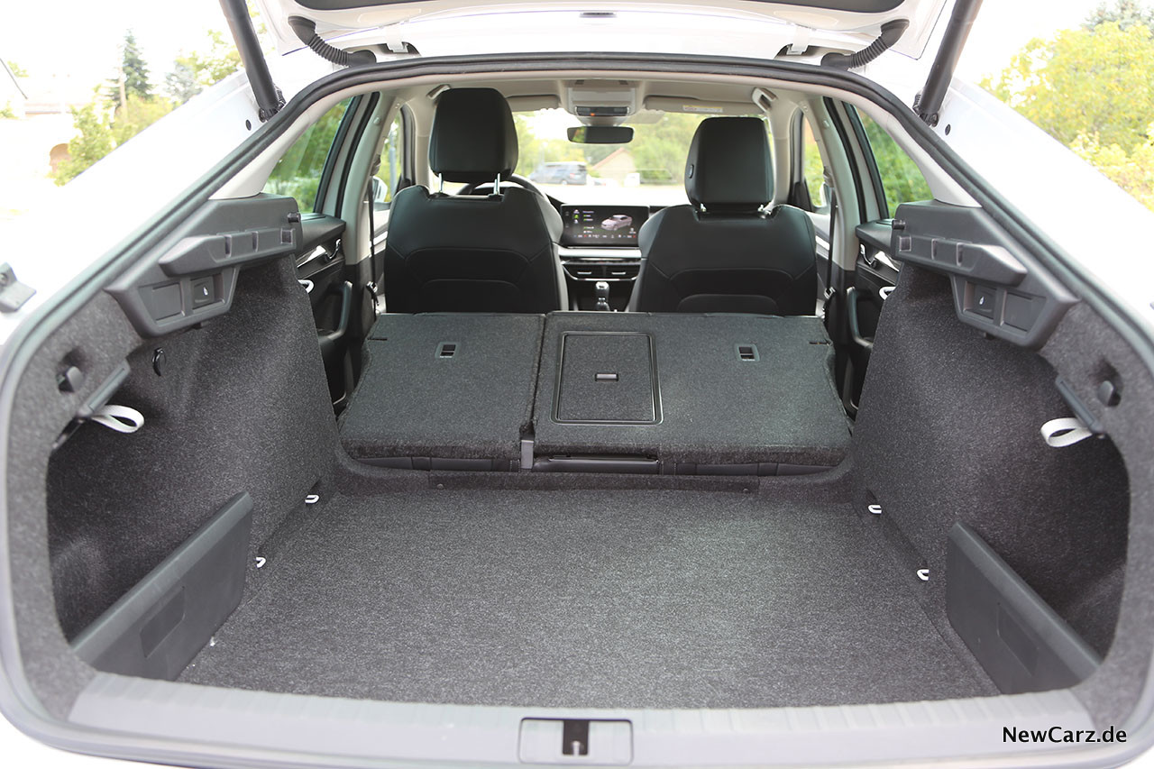 Der Kofferraum ist – wir bitten die saloppe Bezeichnung zu verzeihen – für ein Auto der Kompaktklasse der helle Wahnsinn. 600 Liter passen in das Ladeabteil – mindestens. Das sind lediglich 40 Liter weniger, als der „Combi“ anbietet. Klappt man die Rückenlehnen um, summiert sich das Volumen auf 1.555 Liter, was den Abstand zum kantigen Transporter auf 145 Liter erhöht – die Kombivariante schafft hier 1.700 Liter.
