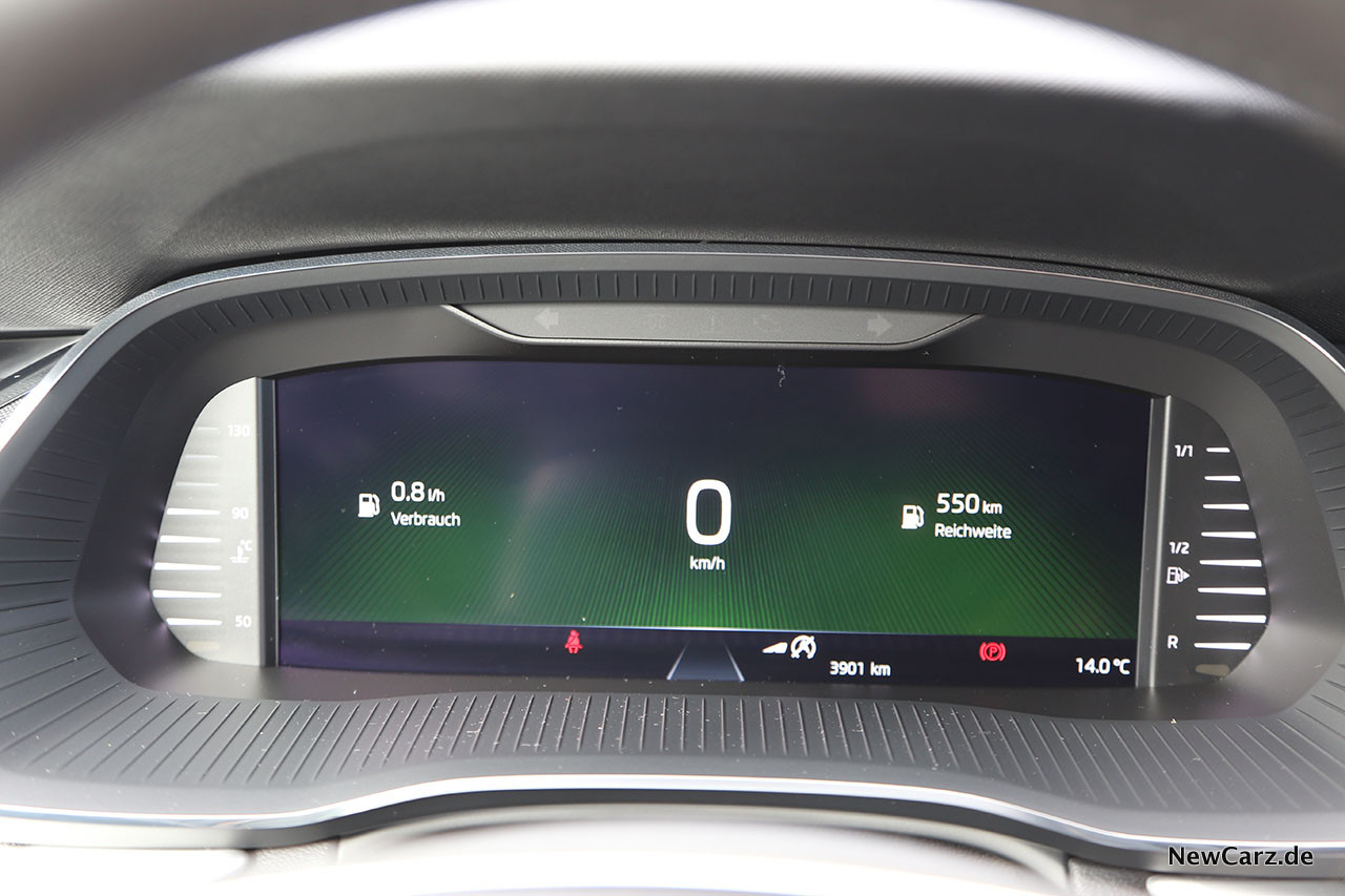 Oft sehen wir im Teillastbereich im nun volldigitalen Cockpit der nächsten Generation das Symbol „ECO“, weches den Betrieb mit nur zwei Zylindern anzeigt. Resultierend auf unserer kurzen Testfahrt ergab der Durchschnittsverbrauch einen Wert von 5,9 Litern.