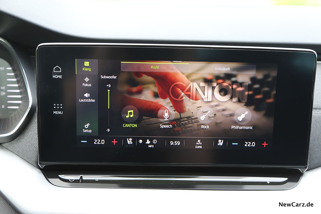Für einen soliden Klang sorgte eine Canton-Soundanlage, die mit 575 Euro zu Buche schlägt und eine zweifarbige Ambientebeleuchtung sorgt für eine heimelige Atmosphäre.