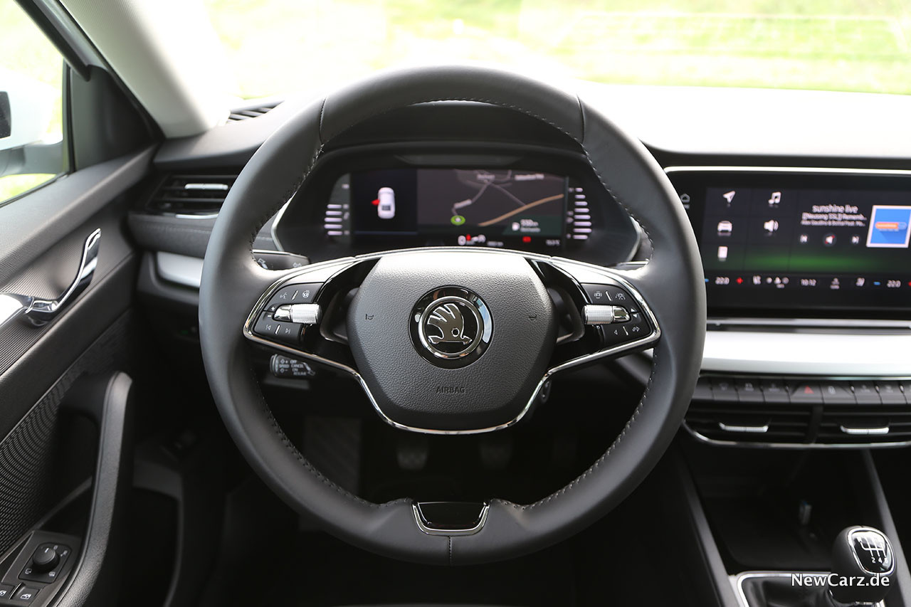 Was uns in unserem Erstkontakt mit der Skoda Octavia IV Limousine an dessen Interieur zuerst auffällt, ist die neuartige Architektur des Armaturenbereichs sowie der Einsatz toller neuer und deutlich hochwertiger anmutenden Materialien.
