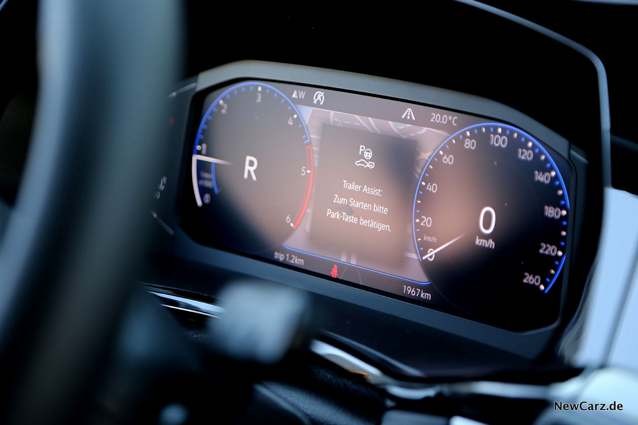 Dank der neuen elektromechanischen Servolenkung können neue Assistenzsysteme in den VW Bulli 6.1 integriert werden. Zu diesen gehört das Spurhaltesystem Lane Assist, eine Verkehrszeichenerkennung, der Park Assist sowie der Anhängerrangierassistent Trailer Assist, welchen wir bereits beim VW Touareg testen konnten.