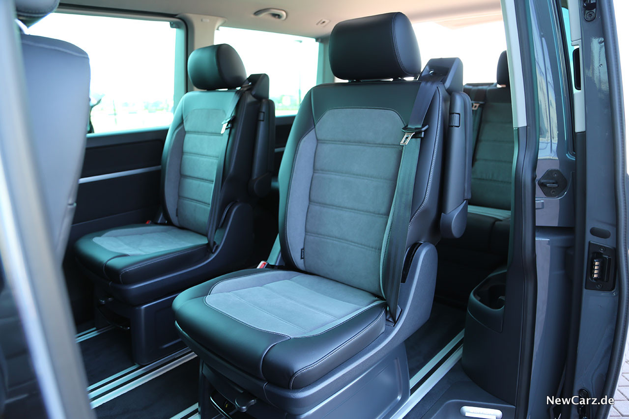 Der Ausparkassistent erkennt Fahrzeuge, Fußgänger oder Fahrradfahrer, die sich seitlich hinter dem Wagen nähern und vollzieht im Falle des Falles einen Bremseingriff. Serienmäßig ist on top der neue Seitenwindassistent, welcher den Bulli automatisch stabilisiert. Das optionale ACC verfügt nun in Verbindung mit dem DSG über eine Stop-and-Go-Funktion sodass der VW Bulli 6.1 automatisch wieder anfährt, wenn das vorausfahrende Fahrzeug beschleunigt.
