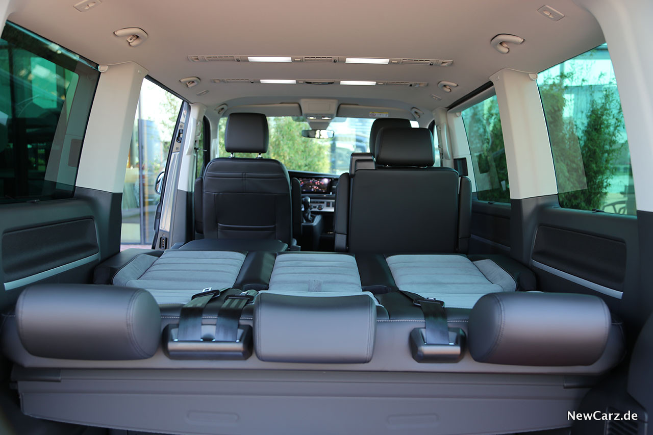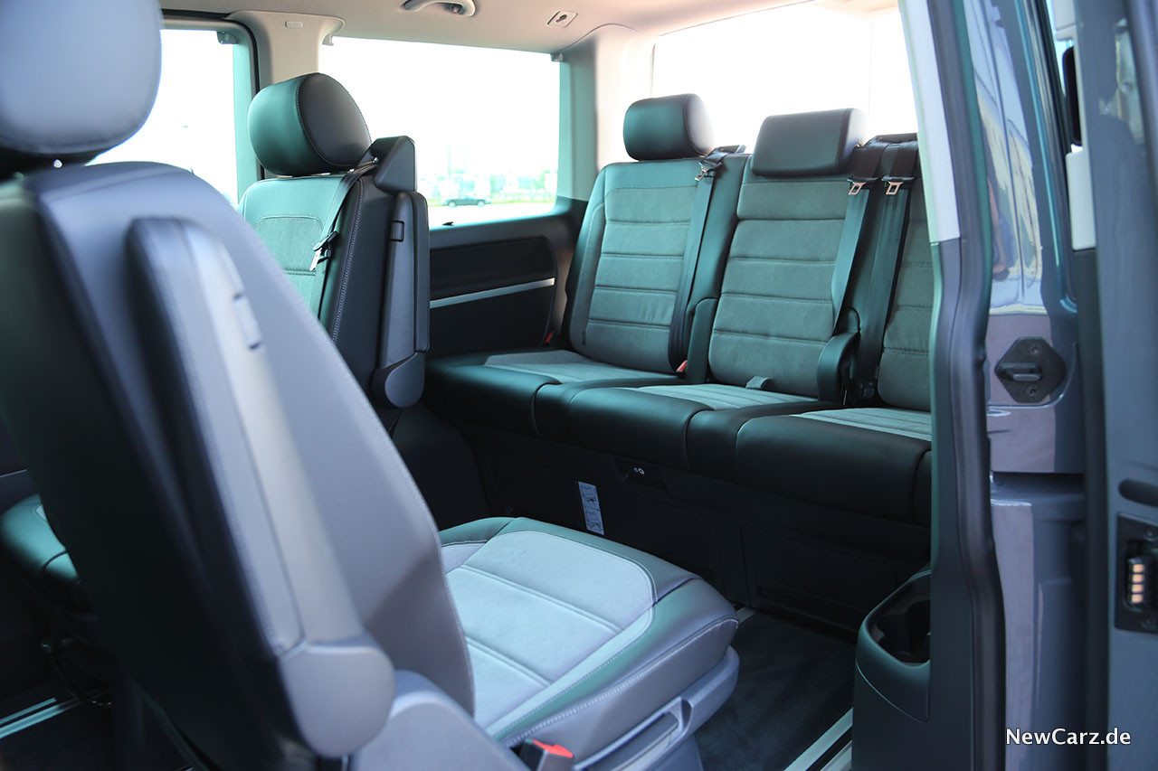 Fakt ist: Dank der Masse horizontaler Linien wirkt das Bulli-Facelift extrem breit und dabei unverändert charismatisch. By the Way findet das 4Motion-Emblem seine Heimat inmitten des Chromspektakels vom Grill, wo es keinesfalls untergeht, sondern adäquat präsentiert wird. Der neue Volkswagen Bulli 6.1 erhält sechs neue Raddesigns sowie sechs neue Außenfarben, wobei die sieben neu abgemischten Zweifarblackierungen ein besonderes Highlight sein dürften.