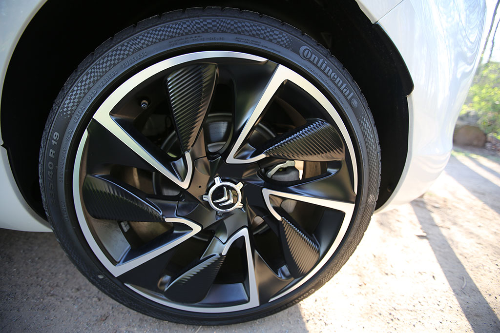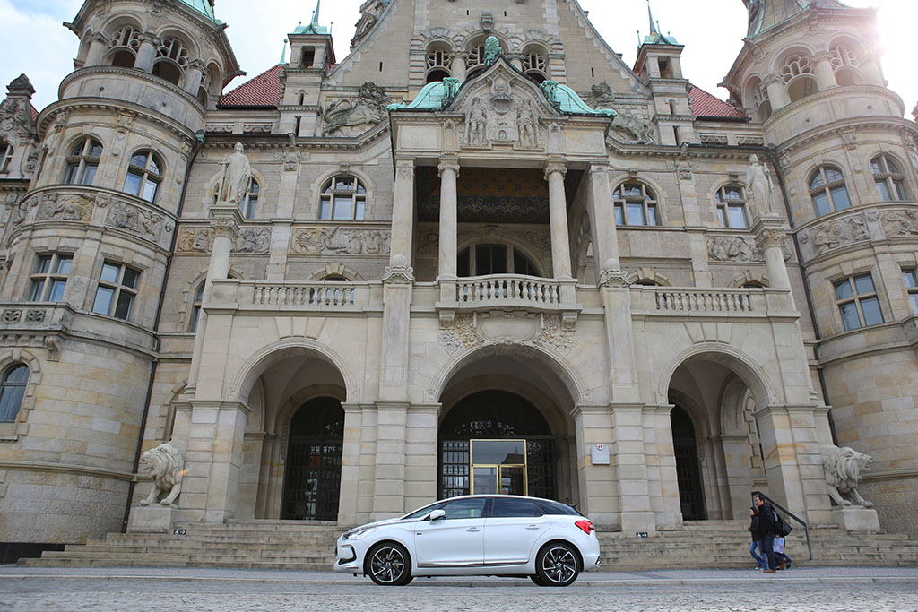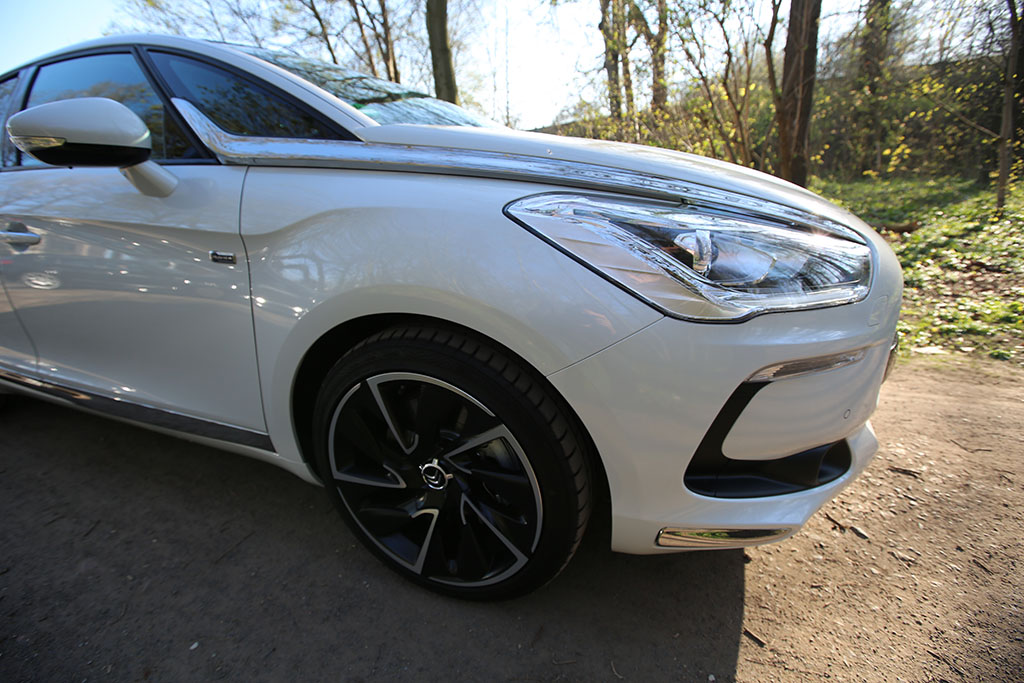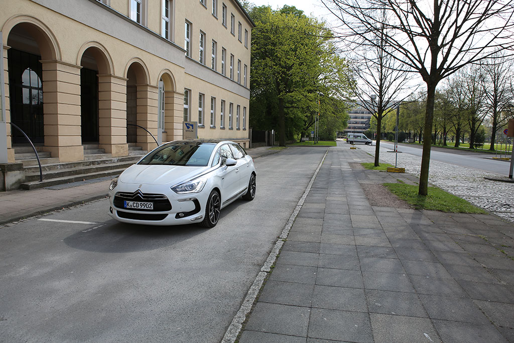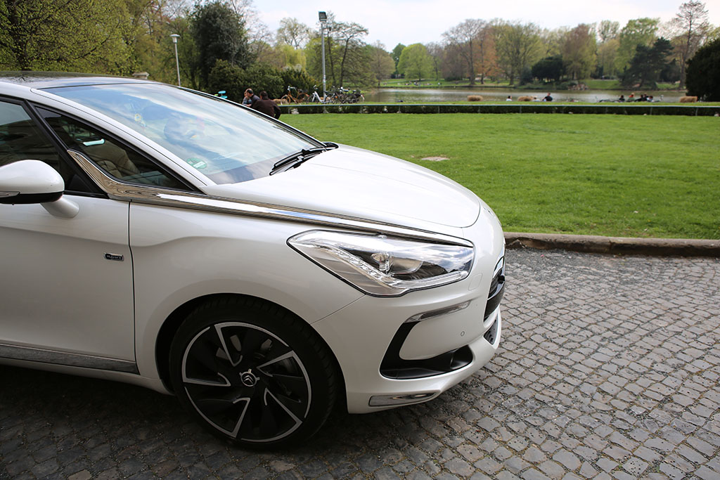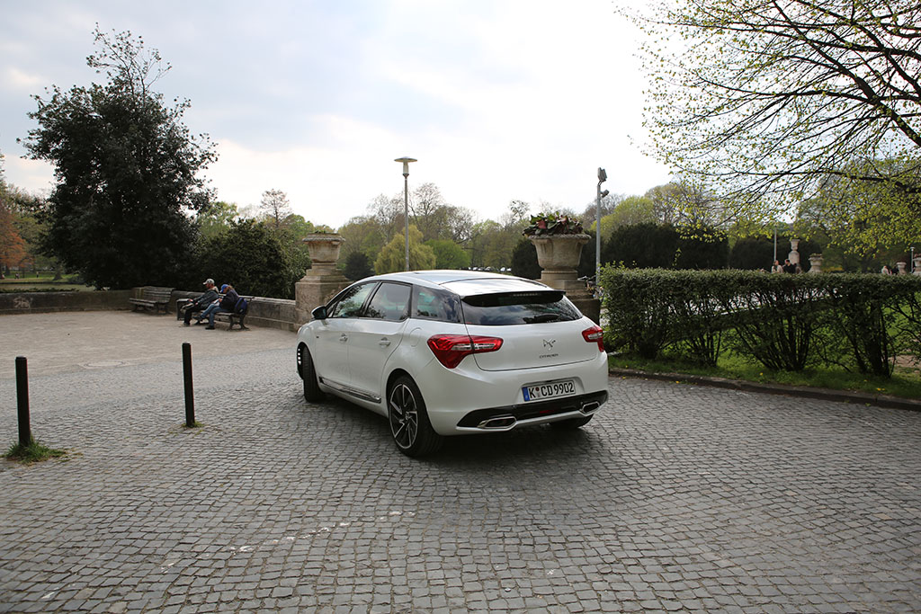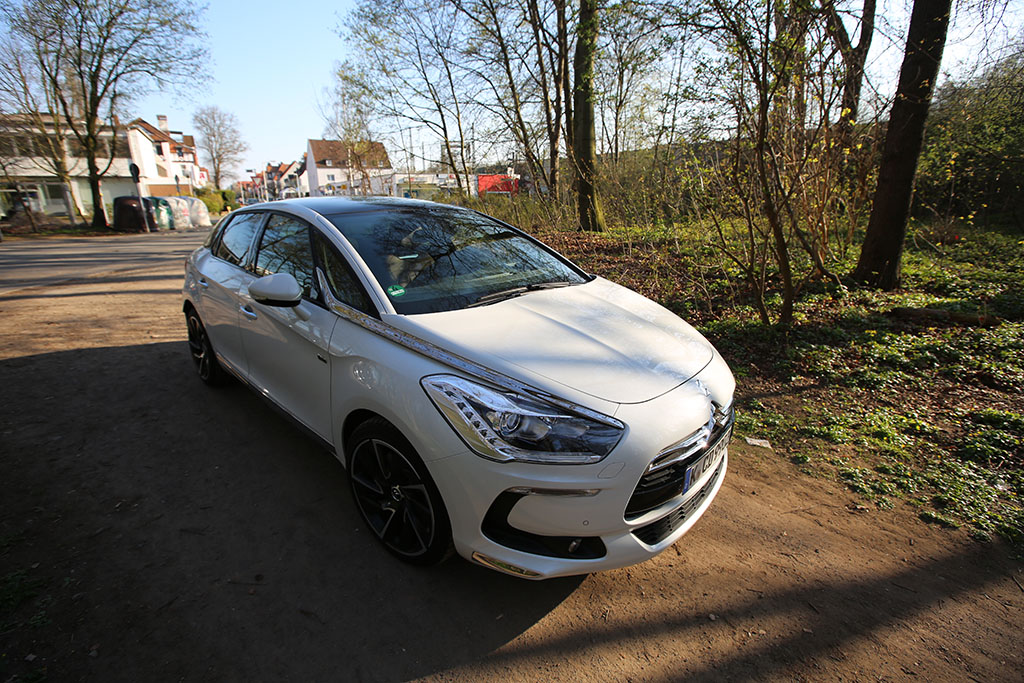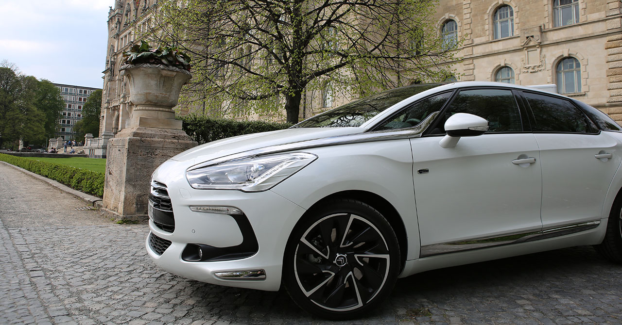 Fährt der Citroën DS5 an einem vorbei, so folgt das Auge dem Gefährt für einen Moment. Warum? Das Design ist ungewöhnlich, extravagant, innovativ. Das Auto sieht auf den ersten Blick schick aus, wie eine knuffige Familienkutsche. Das historische Element der DS-Reihe übernimmt auch der Citroën DS5. An der Seite sind linienförmige Elemente und die Dachlinie ist ebenfalls in einem Zug gezeichnet. An der Front erwarten einen etwas langgezogene Scheinwerfer, was jedoch insgesamt gut zum Design passt. Am Heck entdeckt man neben einem kleinen Spoiler auf der Heckscheibe (dazu später mehr), ziemlich ungewöhnlich gewölbte Rückleuchten. Dazu kommen die sehr schicken Felgen.