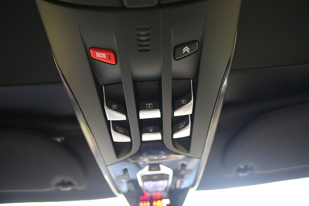 Weiter nach vorne. Auch vorderen Fahrzeugabteil hat der Citroën DS5 Glasdächer verbaut. Interessanterweise für jeden Insassen ein eigenes Glasdach, welches sich auch unabhängig voneinander öffnen und schließen lässt. Auf den Fahrer wartet eine übersichtliche Mittelkonsole. Keine Überfrachtung mit Knöpfen oder Funktionen. In der Mitte ist ein Display zu finden, welches über einen Drehregler in der Mitte der Konsole bedient werden kann. Auch an der Decke sind ein paar Tasten zu finden. Deren Anordnung ist aber etwas unglücklich gewählt. Um dort nicht auf die falsche Taste zu kommen, muss der Fahrer sich die Tasten schon genauer anschauen, was im Verkehr ablenkt. Über die Ästhetik der Bedienelemente in der Mittelkonsole lässt sich ebenfalls streiten. Für den einen übersichtlich, aber zu billig – für den anderen genau richtig.