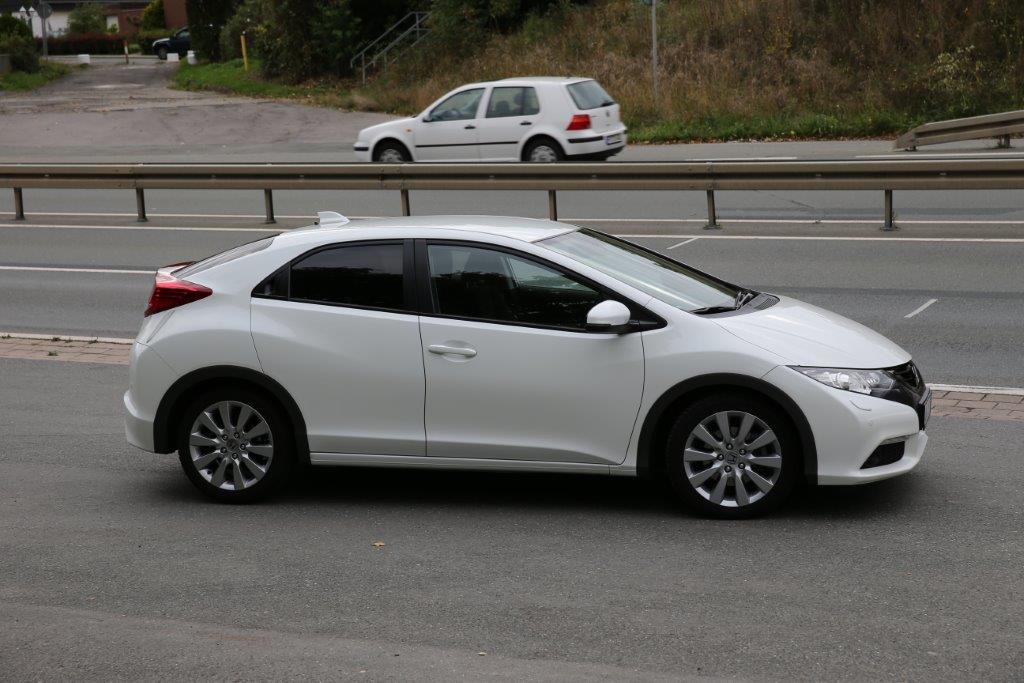 Ein echtes Highlight sind die Verbrauchswerte des Honda Civic. In unserem Testwagen fuhren wir ohne jegliche Anstrengung bei einem Verbrauch von 5,0 Litern durch die Stadt, jederzeit in dem Bewusstsein, dass eine aktiv spritsparende Fahrweise den Verbrauch noch einmal senken kann. Wir fuhren hierbei ohne besonders auf den Verbrauch zu achten, sodass auch einige kurze Zwischensprints in den Verbrauch mit eingingen. Die Herstellerangabe von kombiniert 3,6 Litern auf 100 km erreichten wir so zwar nicht, ein Verbrauch von 4,0 Litern liegt aber bei einem angepassten Fahrstil in Reichweite.