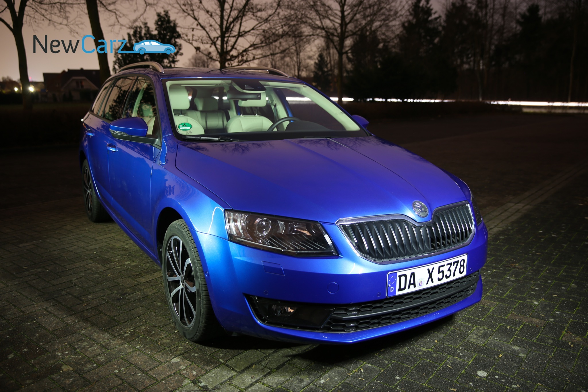 Da steht er also, der race-blaue Octavia Combi. Allein die Farbe ist ein Highlight, da sie mit ihrer Frische und Stärke die Blicke auf sich zieht. Besonders vor dem Hintergrund, dass das Gros der ausgelieferten Modelle in den üblichen Silber-, Grau-, oder Schwarztönen ausgeliefert wird. In Verbindung mit der im Testwagen enthaltenen beigen Lederausstattung entsteht so eine seltene Kombination, die zu gefallen weiß. Doch bleiben wir beim Exterieur: Die Linienführung geriet enorm unaufgeregt, was auf eine ausgesprochene Zeitlosigkeit hindeutet. Viele ebene Flächen, unterstrichen von wenigen, aber passend gesetzten Bügelfalten, sind stilbildend. Das abfallende Dach und die sehr dezent ansteigende Tornado-Linie setzten dabei sportliche Akzente, ohne zu übertreiben.