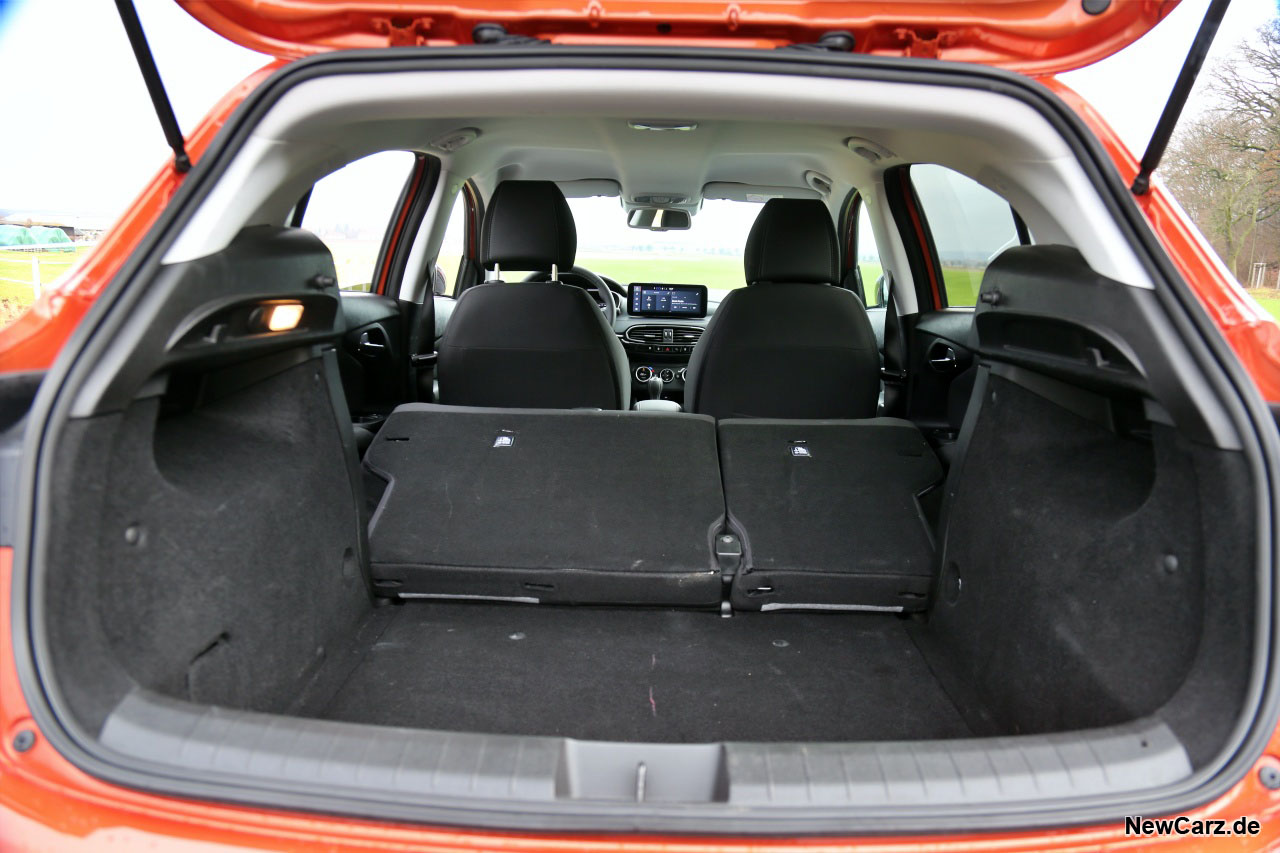 Beim Kofferraum sieht es nicht anders aus: Bereits in Standardkonfiguration passen 440 Liter in das Gepäckabteil – das sind 60 mehr als im Golf 8. Klappt man die zweiteilige Rückenlehne im Fond nach vorne, passen 1.200 Liter hinein. Leider bleibt hierbei eine eklatante Abstufung im Laderaumboden, wodurch die Praktikabilität etwas leidet.