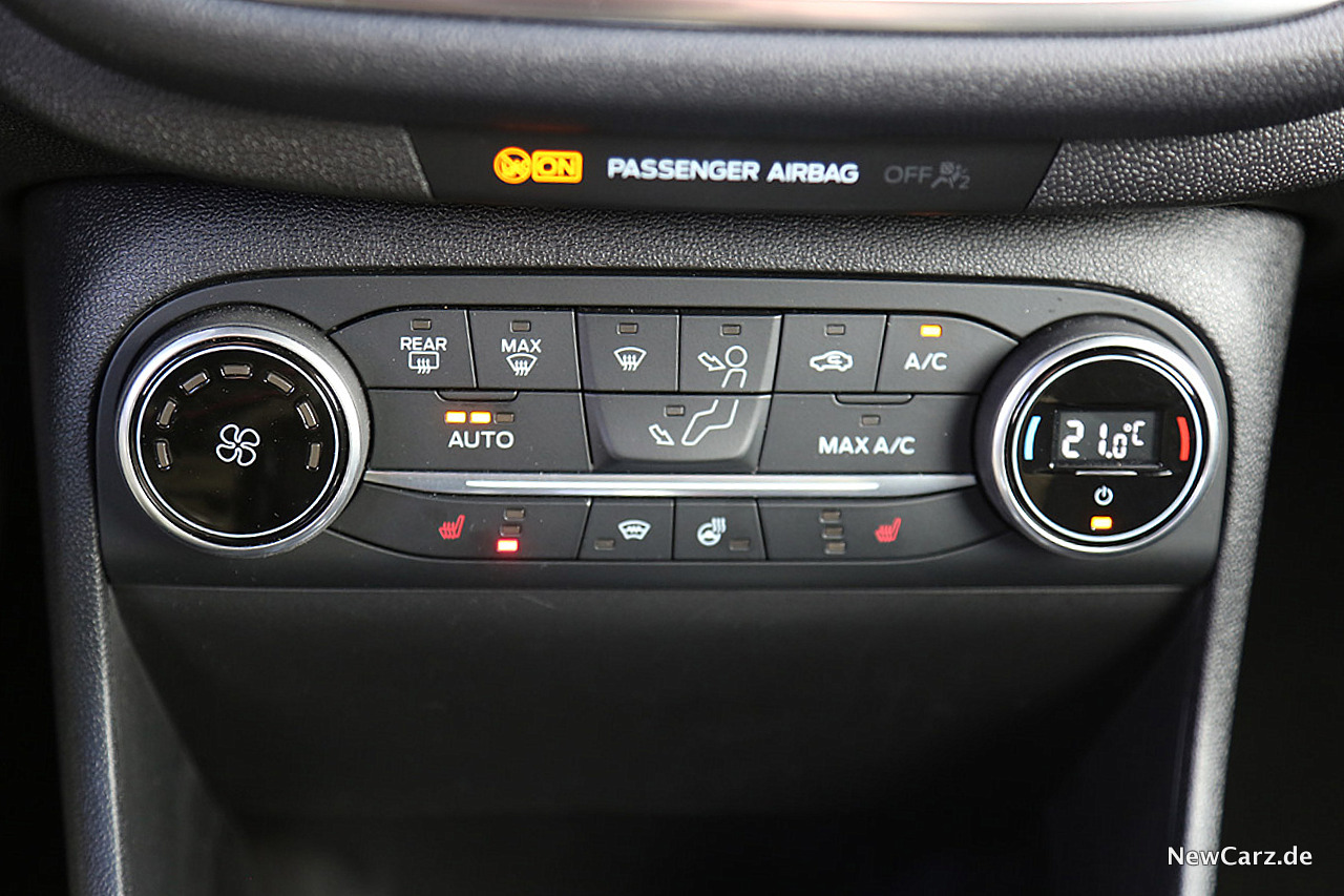 Mindestens ebenso schnell wie der Ford Fiesta ST selbst, erweist sich die Sitzheizung, die bereits nach wenigen Sekunden wohlige Wärme generiert. Dies gilt nicht unbedingt für die Lenkradheizung, welche zunächst etwas Zeit benötigt, um durch die dicke Polsterung bis zu den Fahrerhänden zu gelangen. Danach folgt lediglich eine dezente Erwärmung.