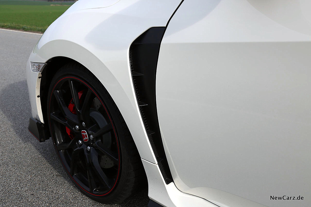 Apropos Klang: Was man im Innenraum komplett überhört, wird außerhalb des Fahrzeugs sehr deutlich wahrgenommen; nämlich das Pfeifen des Wastegates, wenn bei Lastwechsel der vom Turbolader erzeugte, nun überschüssige Druck, abgeblasen wird. Das klingt äußerst kraftvoll und zeigt hierdurch ebenso akustisch die turbogeladene Power des Honda Civic Type R.
