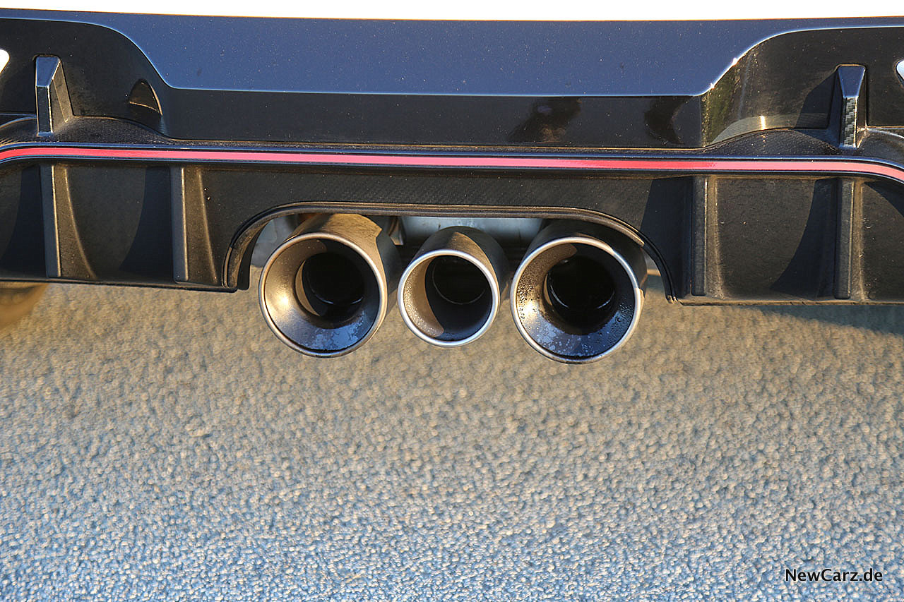 Im mittleren Drehzahlbereich ab 3.000 Touren saugt das mittlere Endrohr Umgebungsluft an und beseitigt dadurch unerwünschtes Abgasanlagen-Dröhnen, welches andernfalls in den Innenraum eindringen würde.