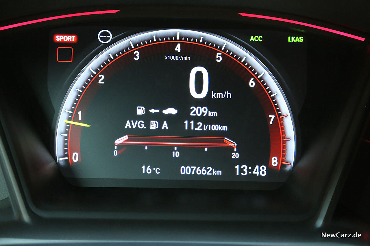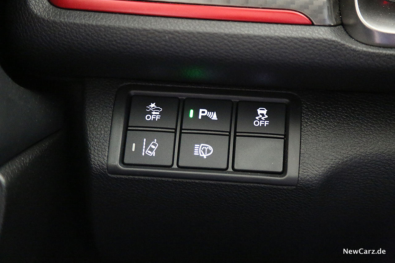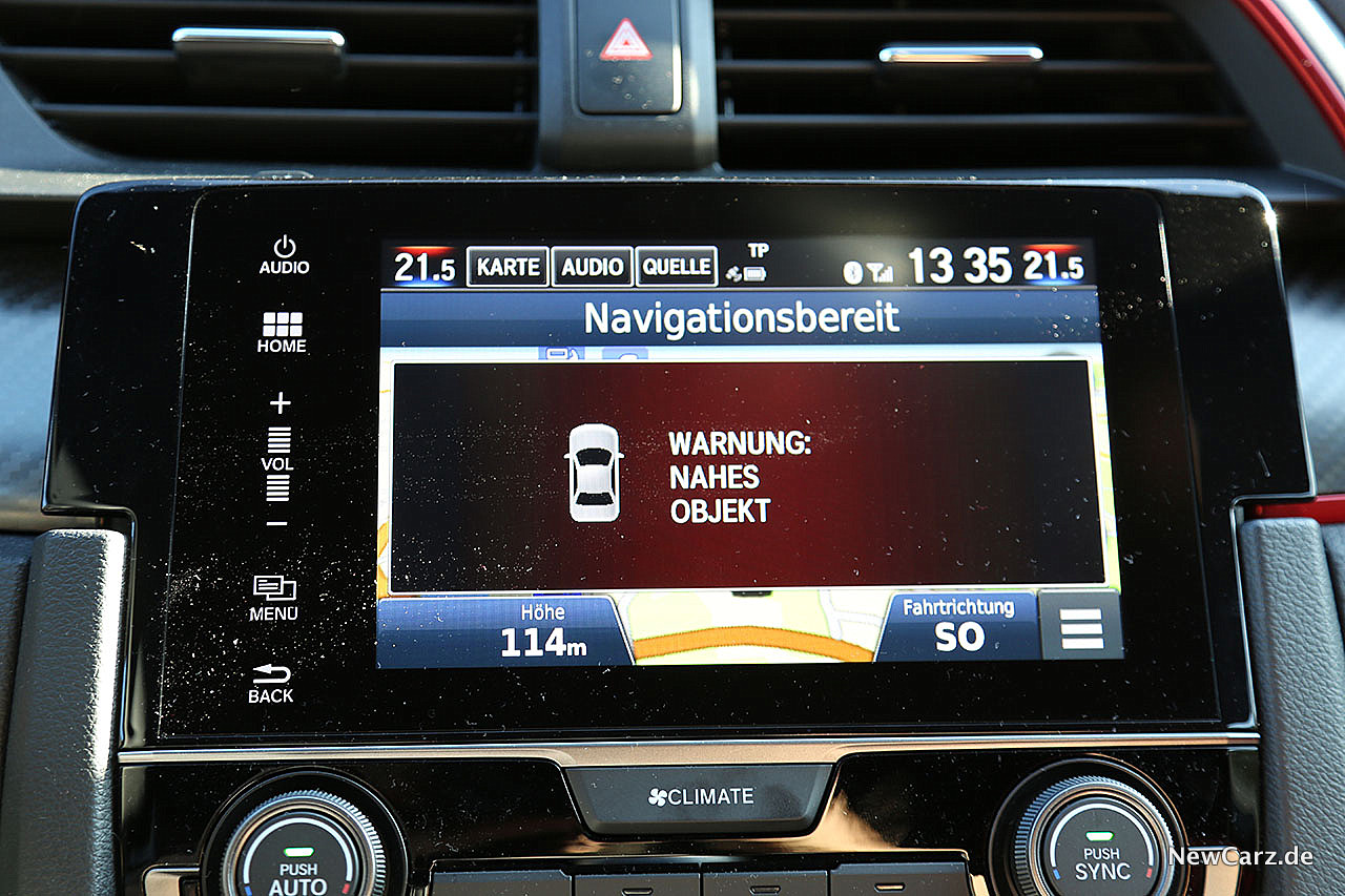 Das Infotainmentsystem mit dem zentralen Bildschirm verlangt bedientechnisch zunächst etwas Aufmerksamkeit, was uns auch im herkömmlichen Civic bereits auffiel. Hat man sich dann allerdings eingewöhnt, gibt es keine Fragen mehr.