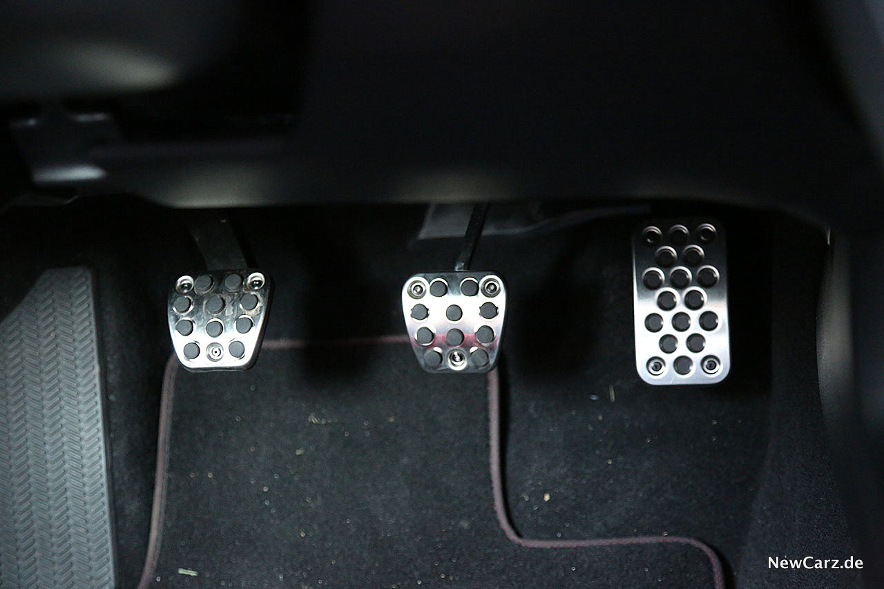 Alle verwendeten Materialien wirken wertig und wurden akkurat verarbeitet und beim Lümmeln auf der längs verschiebbaren, mit Alcantara bezogenen Armauflage der Mittelkonsole fällt der Blick auf den aus Aluminium gefrästen Schaltknauf. Dieser sieht nicht nur cool aus, sondern lässt die Bedienung zu einem sehr gelungen knackigen Getriebe zu, wozu wir auch später noch genauer kommen.