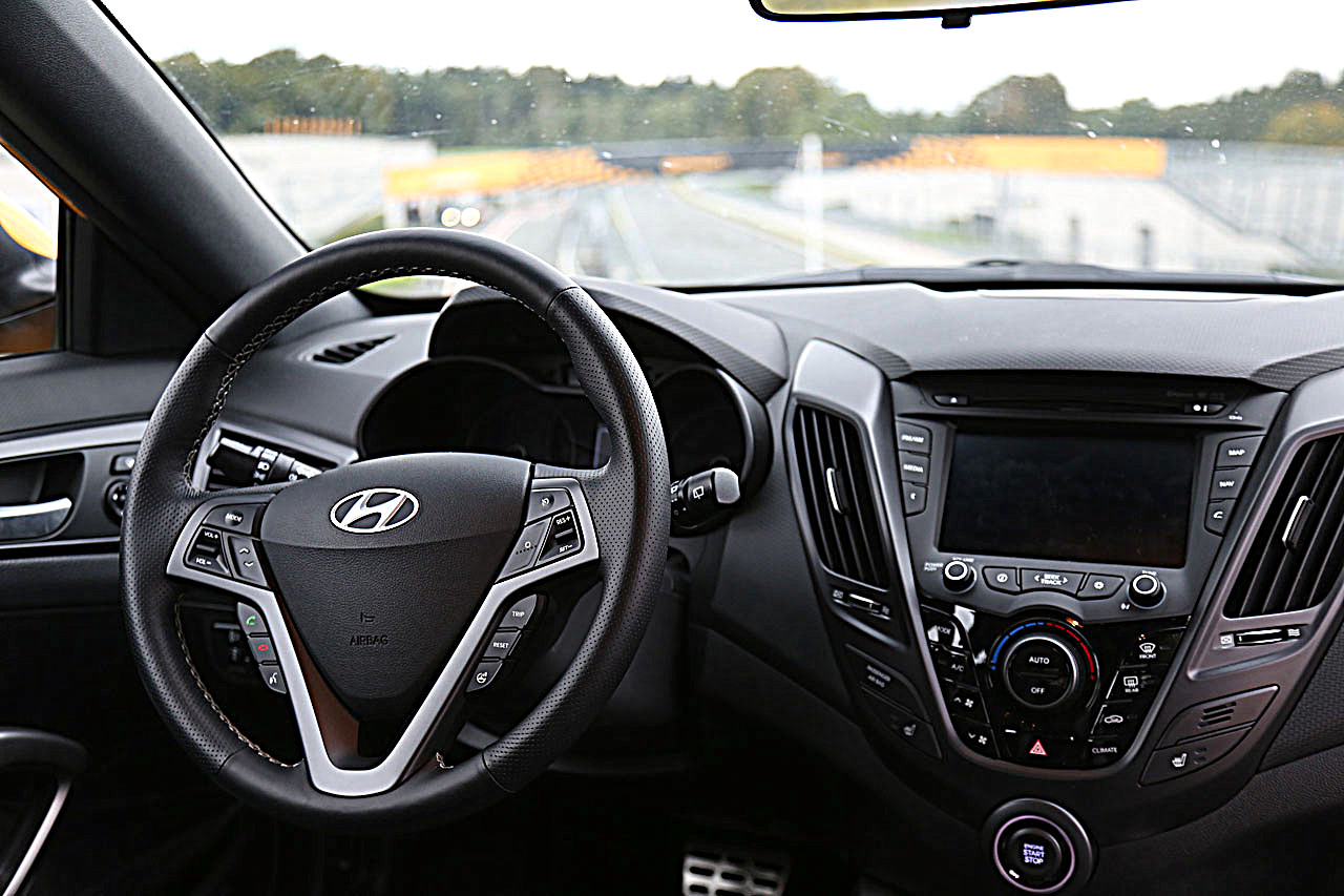 Die Klimaeinheit ist separat aufgeteilt und das Infotainment System lässt sich über einen Touchscreen steuern. Dort wo bei den deutschen Konkurrenten in der Regel der Lichtschalter sitzt, findet man beim Veloster ein kleines Feld mit Tasten, die unter anderem die Lenkradheizung aktivieren bzw. das ESP deaktivieren. Das ist keinesfalls störend, nach kurzer Eingewöhnungszeit kann man diese Tasten sogar blind bedienen. Die Verarbeitungsqualität gibt keinen Anlass zur Kritik. Im Gegenteil. Der Innenraum wirkt grundsolide und die Materialanmutung ist wertig. Die Hebel und Schalter rasten satt ein – so wünscht man sich das.