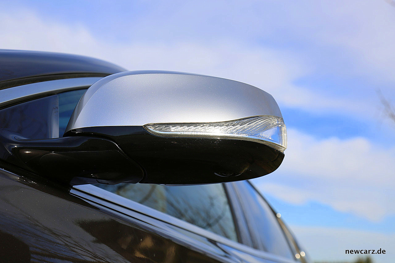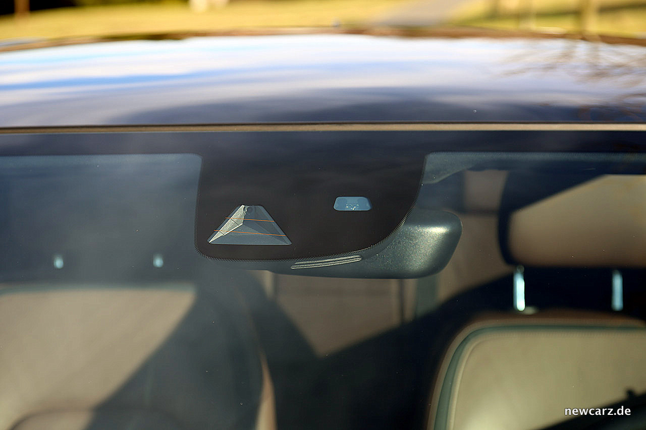 Die Warnungen des Totwinkelassistenten erfolgen nur für den im Namen beschriebenen Zweck. Schnell herannahende Fahrzeuge auf der linken Spur erkennt das System hingegen nicht. Dafür sitzen die Warnleuchten nicht im Spiegelglas der Außenspiegel, sondern optisch besser wahrnehmbar im Innenraum, direkt am Spiegelansatz.
