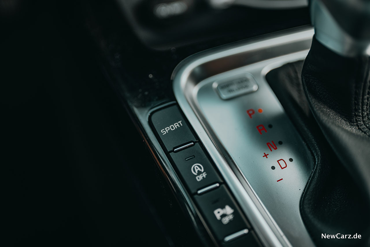 Für Hybridversionen und alle Modelle mit dem Doppelkupplungsgetriebe DCT7 – also auch für diesen Testwagen – gibt es ein Drive Mode Select, welches durch verschiedene Fahrmodi den gewünschten Fahrstil unterstreichen kann.