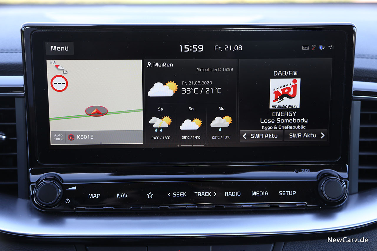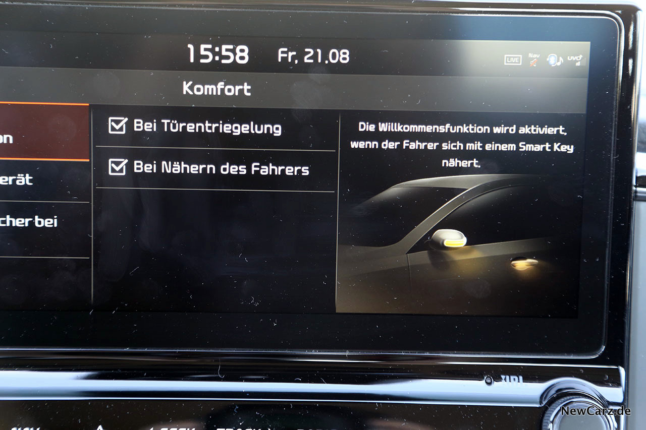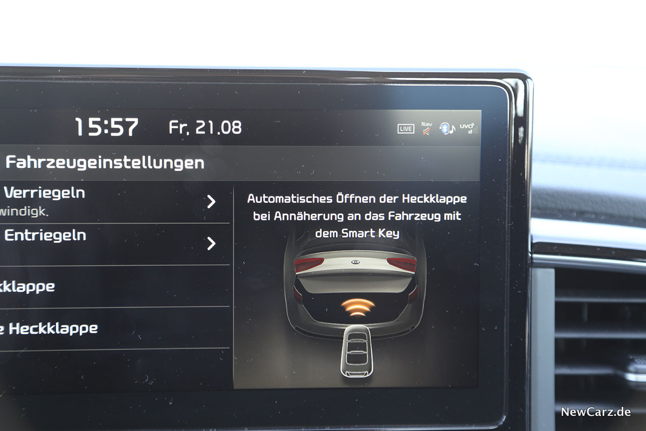 All dies, also der große Touchscreen, das JBL und das Navigationssystem mit den hilfreichen UVO-Funktionen sind Bestandteil des Navigationspakets für rund 1.355 Euro extra.