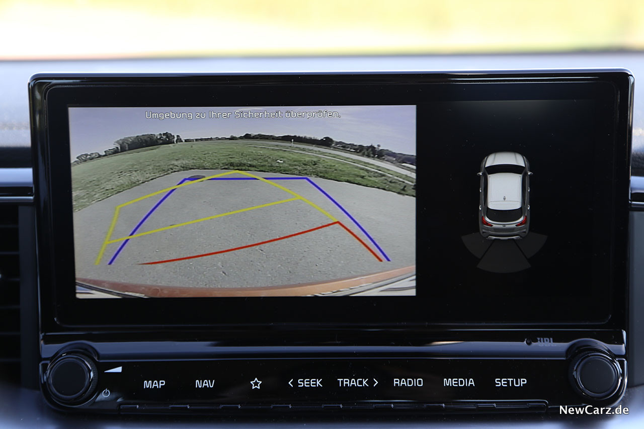 Die Rückfahrkamera hilft enorm beim Rangieren, denn durch das massive Heck mit seinen doch recht ausgeprägten C-Säulen leidet die Sicht nach hinten ein wenig.