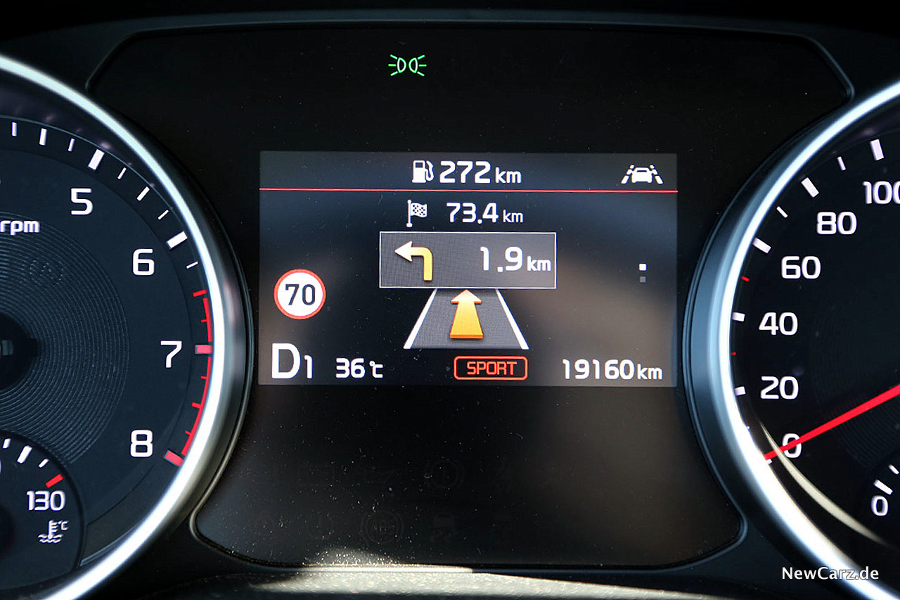 Hinzu kommt eine trotz großer Informationsdichte sehr übersichtlich gestaltete Zielführung des Navigationssystems, welches dank UVO-Online-Dienste auch genaue Echtzeit-Informationen des Verkehrsgeschehens berücksichtigte.