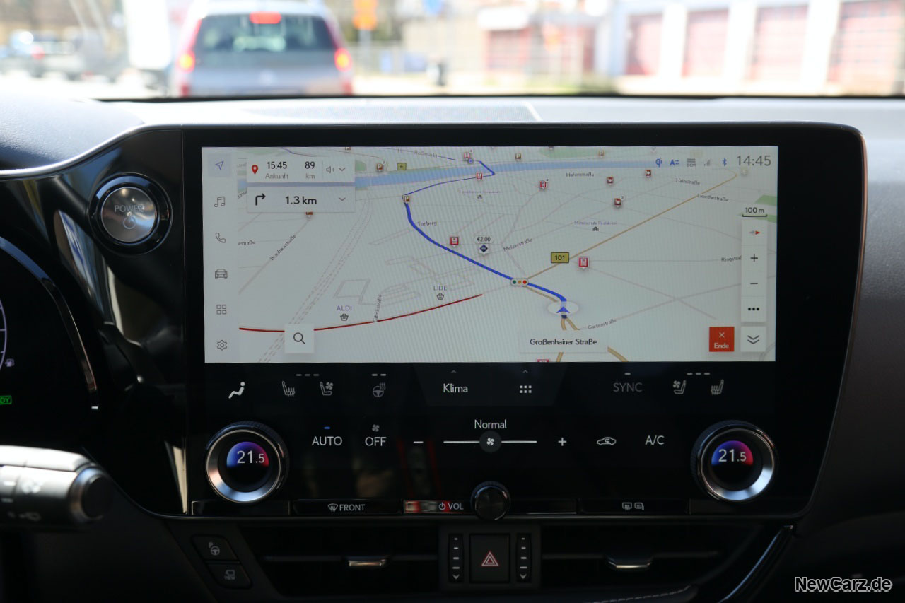 Im Innenraum fällt zunächst der riesige 14-Zoll-Bildschirm ins Auge – der Größte, den Lexus jemals verbaut hat. Über diesen lassen sich nahezu alle Funktionen steuern – und das nach kurzer Eingewöhnung erstaunlich intuitiv.