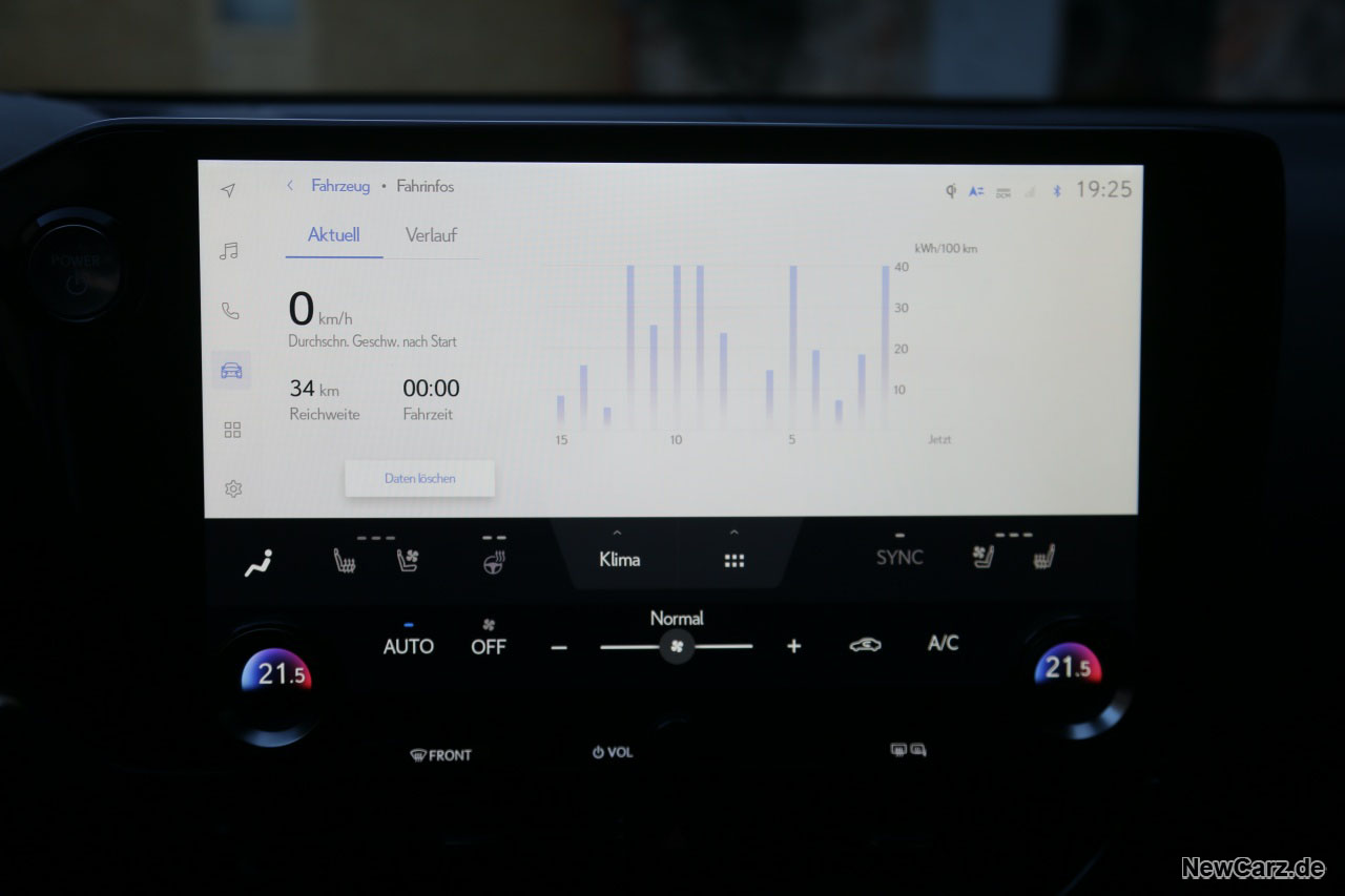 - Durchschnittsverbrauch (NewCarz): 6,4 l/100 km (mit leerem Akku)