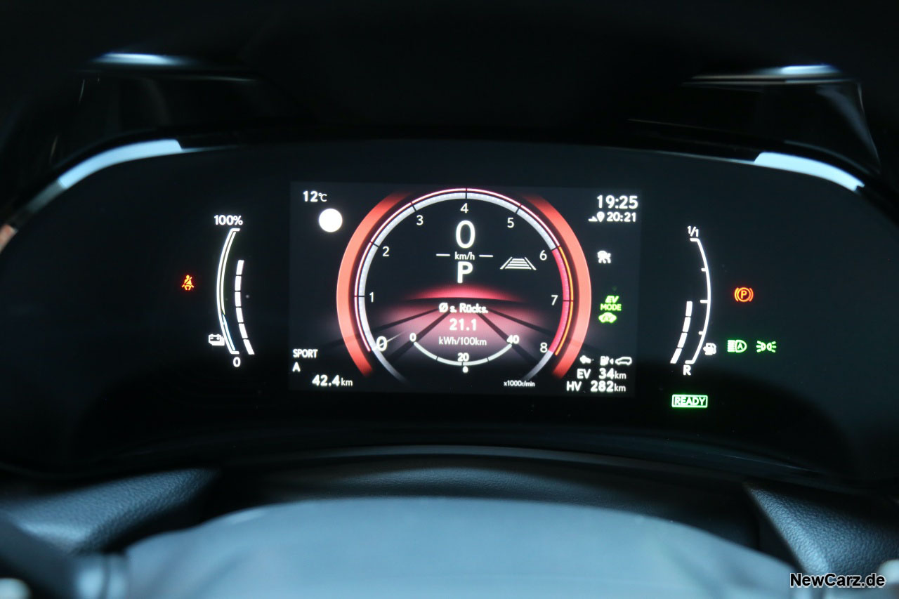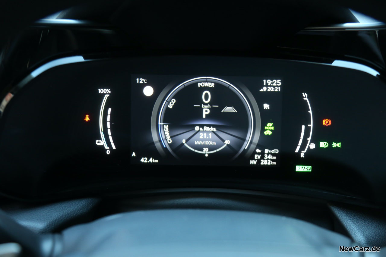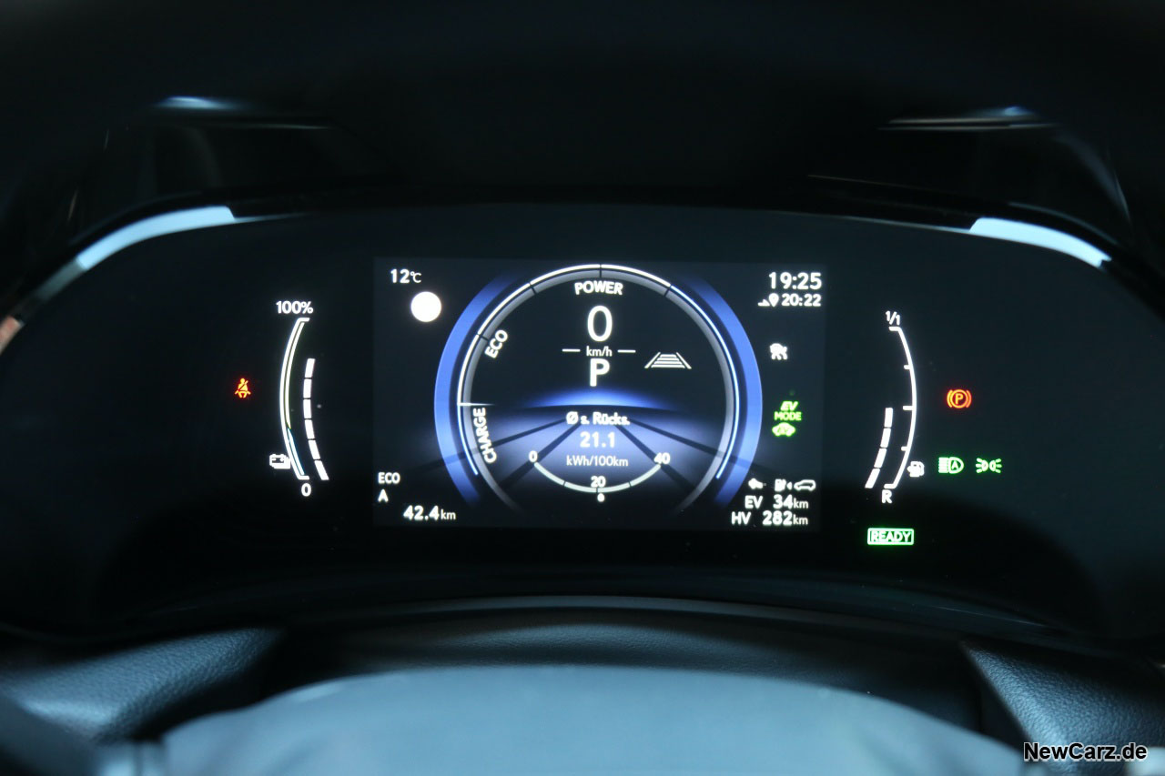 Mit dieser Ladung suggerierte der Lexus uns 47 Kilometer rein elektrisch fahren zu können. Am Ende waren es echte 46 Kilometer bei normaler Fahrweise – ohne Zurückhaltung, aber auch ohne sportive Einlagen. Geht man von einer externen 100-Prozent-Ladung aus, dürften die Reichweiten deutlich über der 50-Kilometer-Marke liegen. Die Herstellerangaben von 76 Kilometern beziehungsweise sogar 98 Kilometer innerstädtisch, möchten wir allerdings anzweifeln.
