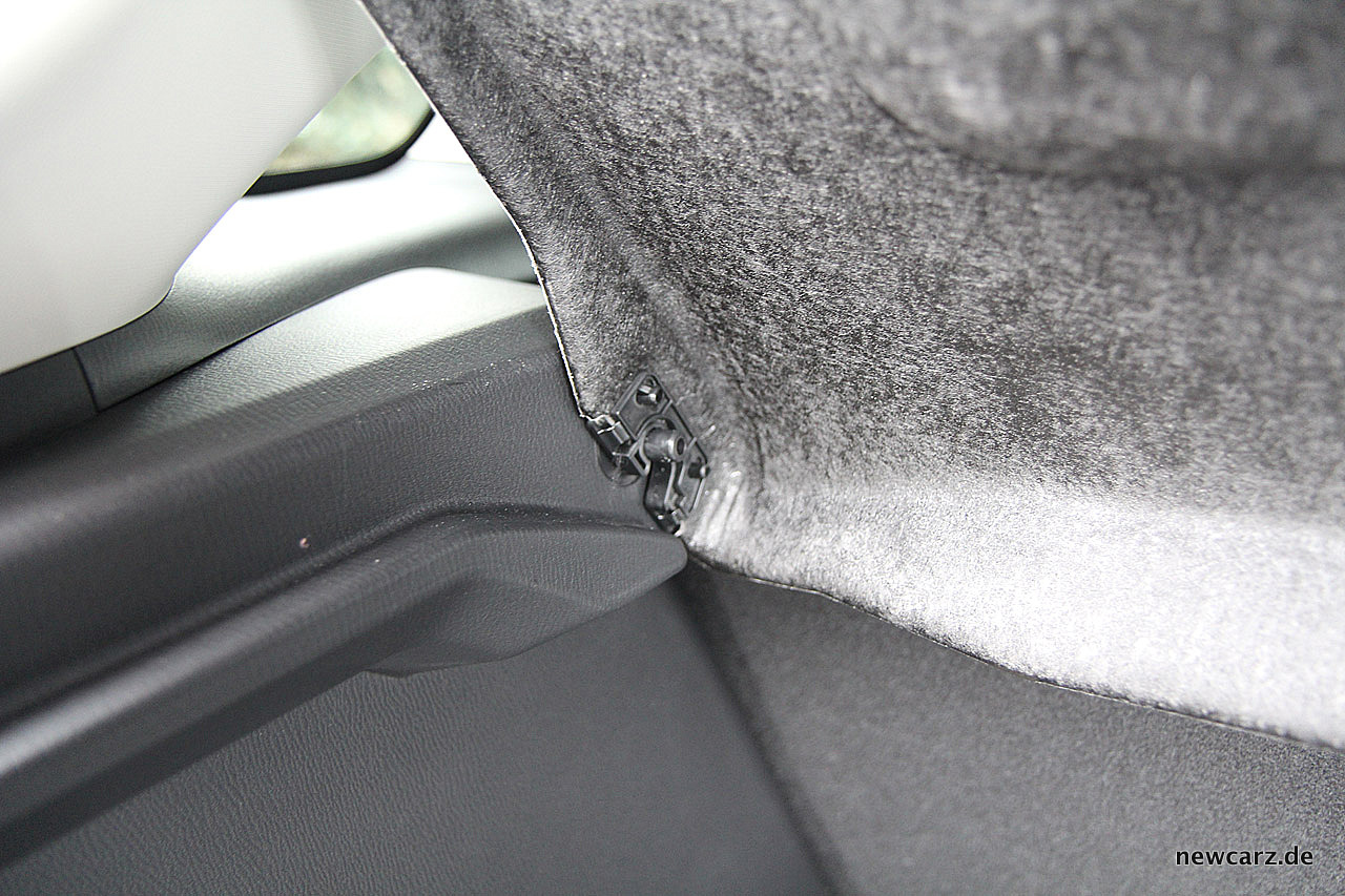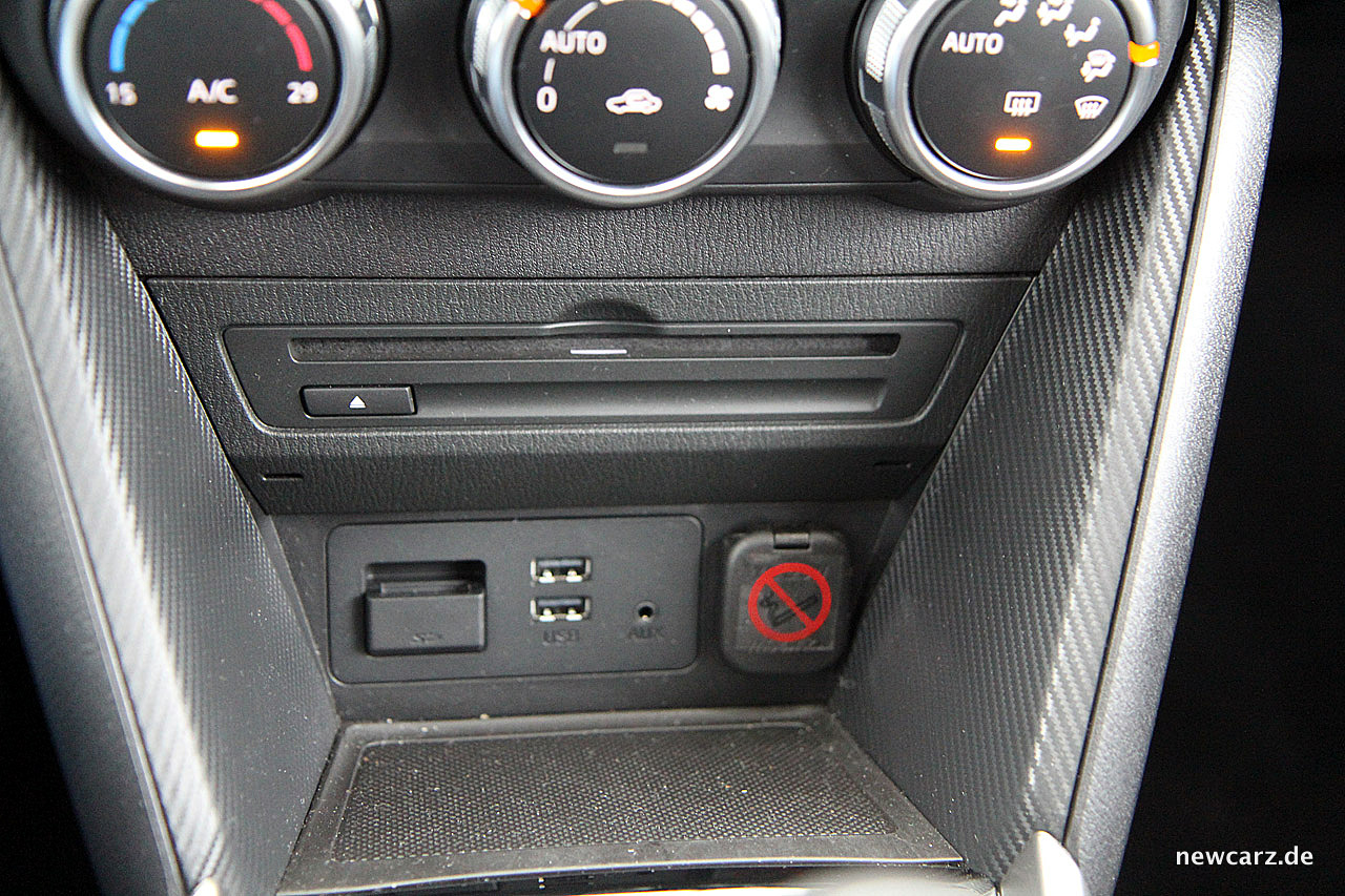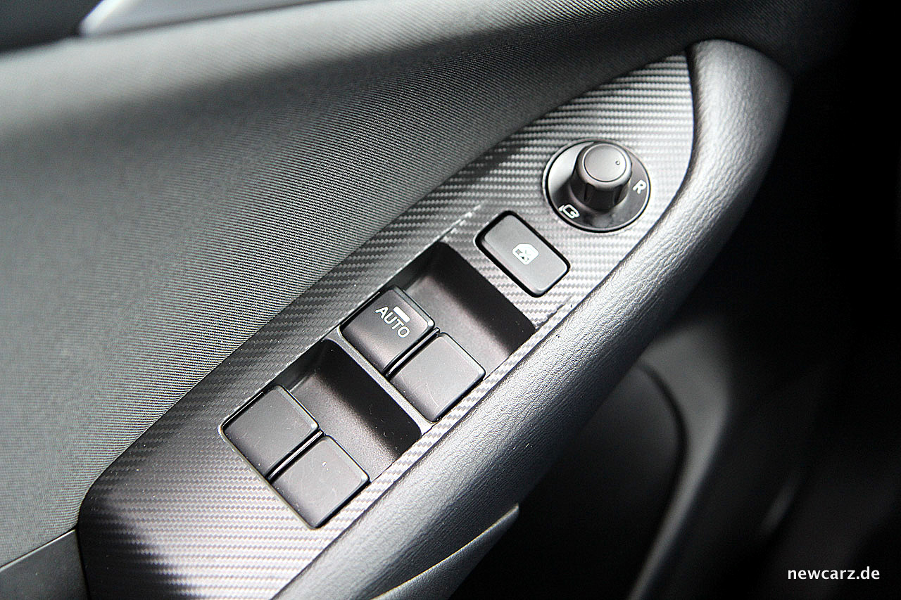 Der Öffner der Heckklappe erweist sich als zu kleiner Taster und gestaltet das Öffnen mitunter recht fummelig. Bei verschmutztem Außenkleid des Mazda ist dies ein Garant für ebenso schnell verschmutzte Finger.