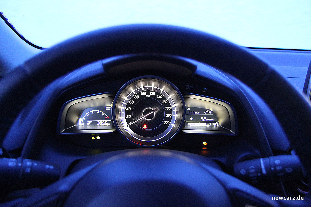 Die Höchstgeschwindigkeit von 177 km/h erreicht der Mazda mit viel Anlauf und fühlt sich dabei gequält an. Doch wen interessiert das? Sicherlich kaum einen CX-3 Kunden, welcher dieses Kompakt-SUV mit an Sicherheit grenzender Wahrscheinlichkeit nicht als Langstrecken- und Autobahngefährt angeschafft hat.