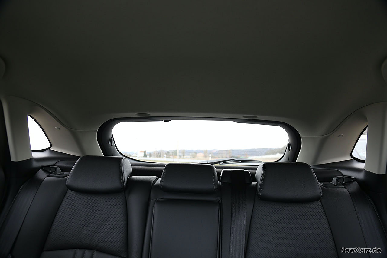 Die Platzverhältnisse bleiben derweil zum Vorgänger identisch, bieten vorn ein gutes Raumgefühl, im Fond ist dieses jedoch geringer. Die Kopffreiheit geht bis Körpergrößen von 1,75 Metern zwar noch in Ordnung, doch die hohe Gürtellinie und die mit den breiten C-Säulen einhergehenden wenigen Fensterflächen sorgen zusätzlich für subjektiv empfundene Enge auf der zweiten Sitzreihe.