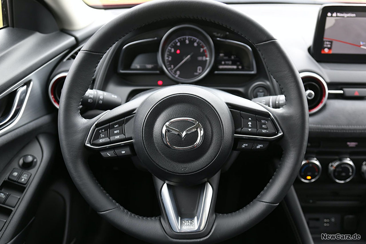 Das G Vectoring-Control Plus lässt auch zügige Kurvenfahrten zu, da es das Handling verbessert sowie gefühlte Übergänge zwischen Längs- zu Querbeschleunigungen und umgekehrt reduzieren kann. Wenig Lob hat hingegen weiterhin das i-Stopp-System verdient. So heißt das Start/Stopp-System bei Mazda und benötigt im Fall des CX-3 deutlich zu lange, um zu reagieren. Hier hat sich gegenüber dem Vorgänger leider nichts verändert.