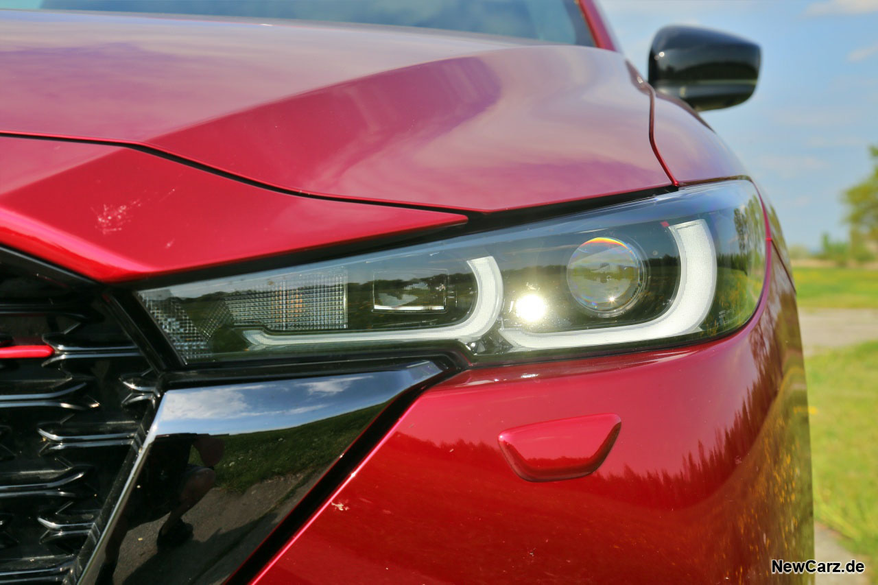 Als Homura besaß der getestete CX-5 die zweitbeste Ausstattung, bei der unter anderem Matrix-LED-Scheinwerfer ab Werk dabei sind. Das Ausblenden anderer Verkehrsteilnehmer erfolgte im Praxistest zügig und zuverlässig. Die Homogenität des Lichtkegels war ebenfalls erstklassig; Flecken sucht man jedenfalls vergeblich. Lediglich die Helligkeit hätten wir uns insgesamt ein bisschen stärker gewünscht und die Reichweite des Abblendlichts darf auch gern ausgeprägter sein.