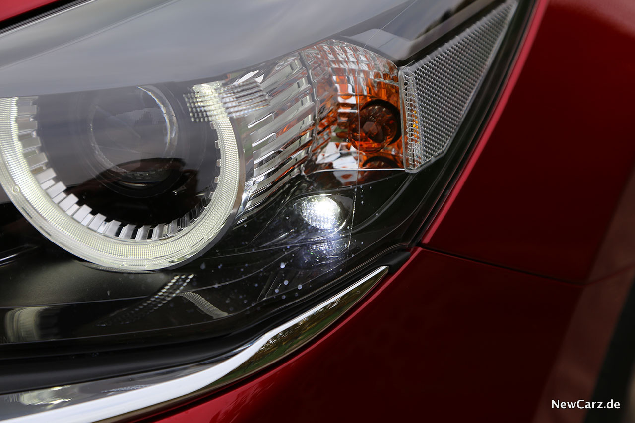 Der fokussierte Blick durch nun standardmäßige, formschön integrierte LED-Scheinwerfer in der überarbeiteten Front wirken auf Anhieb überaus sympathisch. Das ehemals geschwungene LED-Tagfahrlicht ist passé und wird nun durch grelle LED-Dots in deutlich schmaleren LED-Scheinwerfern realisiert.