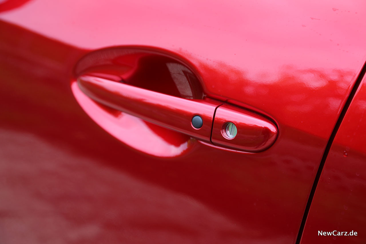 Daumen nach oben: Die Außenspiegel klappen bei Verriegeln des Fahrzeugs an. Keyless ist hier an Bord und die dazugehörigen Sensoren finden sich an den vorderen Türgriffen sowie an der Heckklappe.