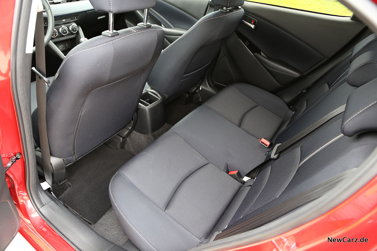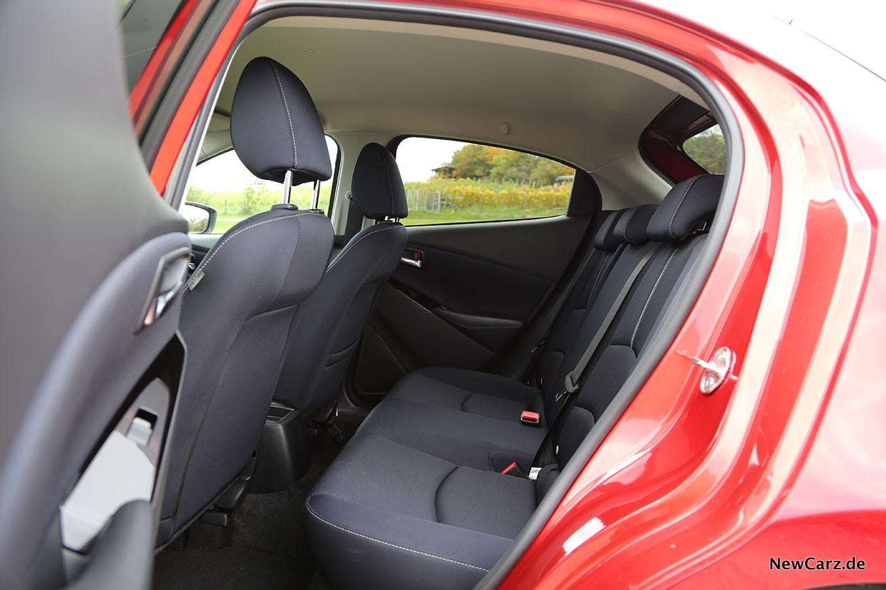Auch der Innenraum des 2er Mazda erhielt eine kleine Erfrischungskur, die sich im Detail bemerkbar macht. Die Sitze zeigen sich für einen Kleinwagen angenehm bequem und bieten auf der ersten Sitzreihe auch auf der Langstrecke ausreichend Komfort.