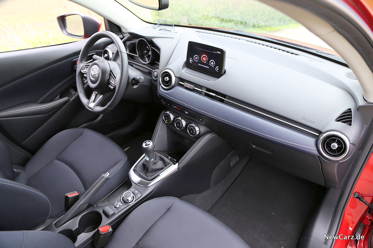 Generell wirkt der Innenraum im 2er sehr wertig. Insbesondere gegenüber seiner – auch deutschen – Konkurrenz kann der Japaner hier überzeugen. Dabei versprüht auch Mazda´s Kleinster ein unübersehbares Flair der Noblesse, was unseren Testern allesamt auffiel. Kurz: Für einen Kleinwagen ist es nicht üblich, so viel Softtouch und einen derart aufgeräumten und wertigen Innenraum vorzufinden.