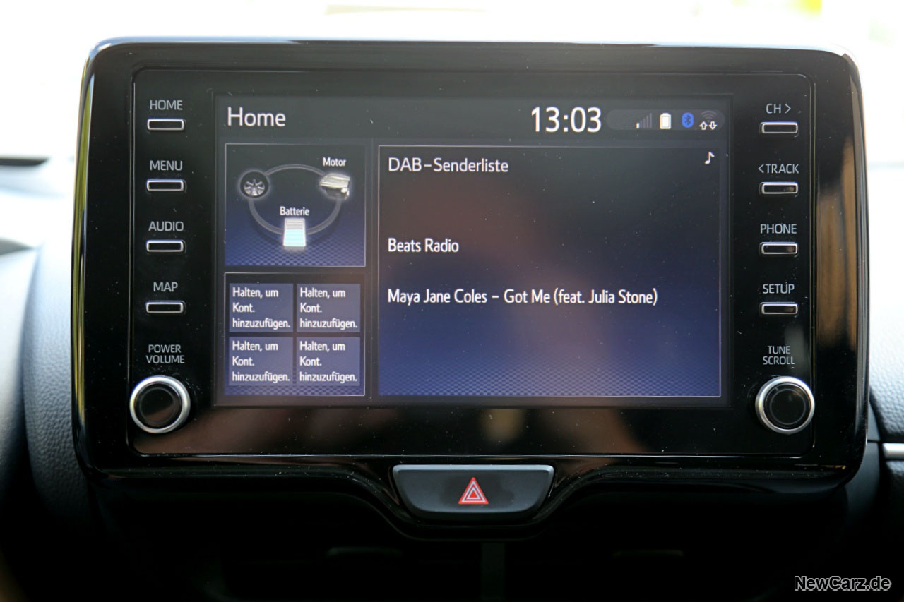 Ein Infotainment mit einem 8-Zoll-Zentralbildschirm offerierte eine leicht von der Hand gehende Bedienung und mannigfaltige Infos zum Hybridsystem informieren den Fahrer umfassend über Energieflüsse, den Akkustand und einiges mehr.